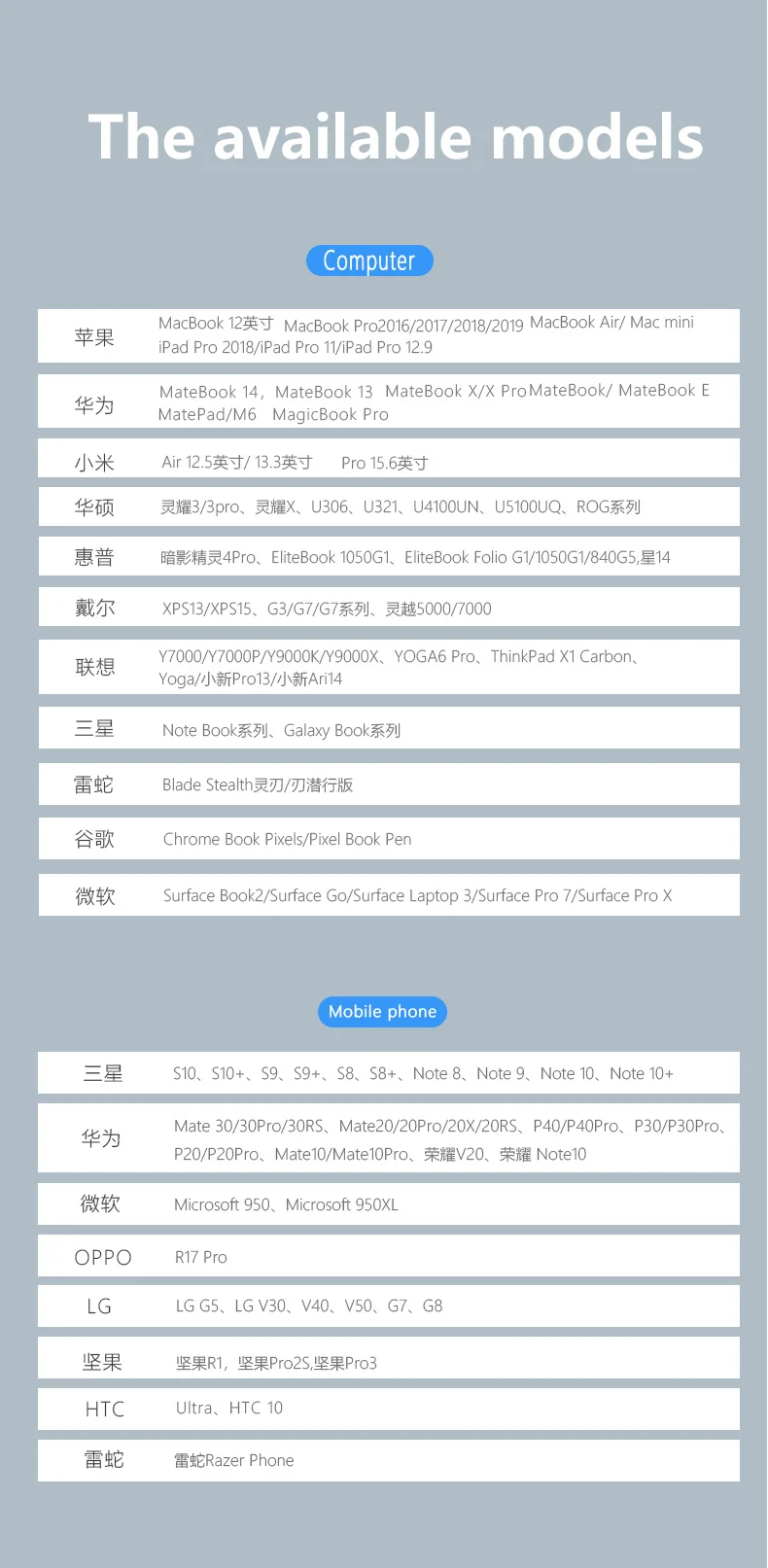 Примечание: функция беспроводной зарядки практична, пожалуйста, обратитесь к следующим моделям мобильных телефонов