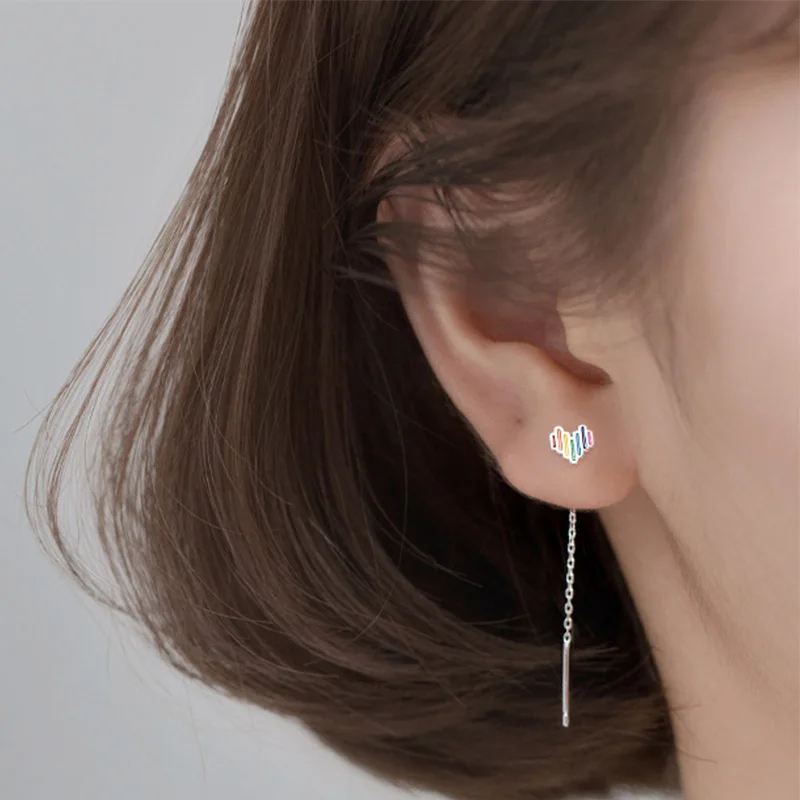 Серьги-подвески женские из серебра 925 пробы, яркие, с любовным сердцем, DS1161