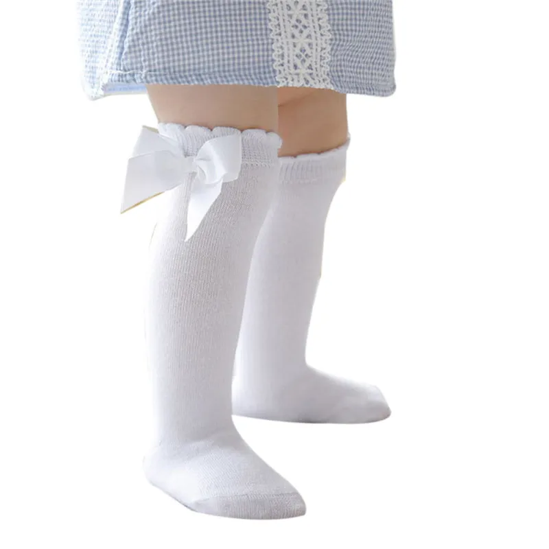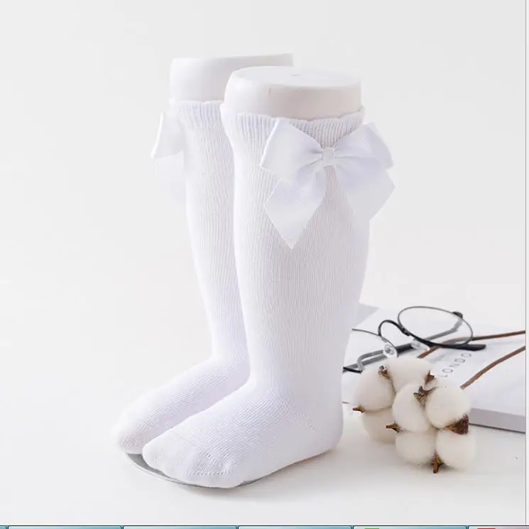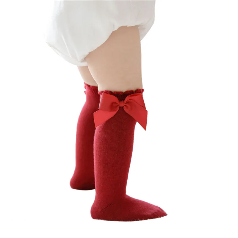 Blotonaмилые длинные носки без пятки для маленьких девочек дышащие однотонные Хлопковые гольфы принцессы с бантом От 0 до 7 лет