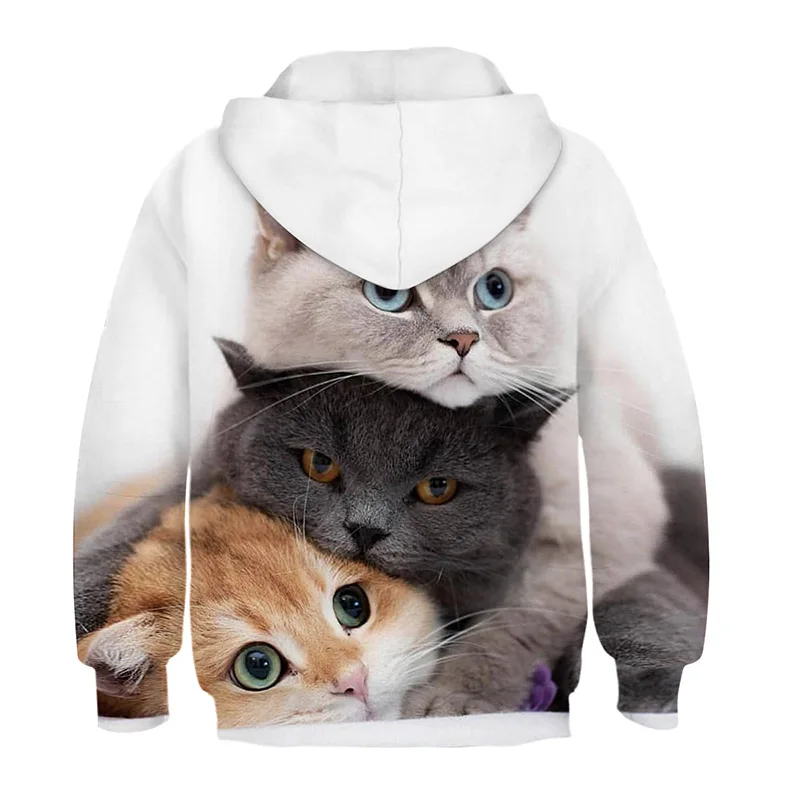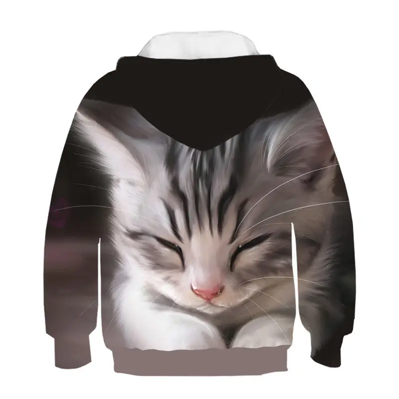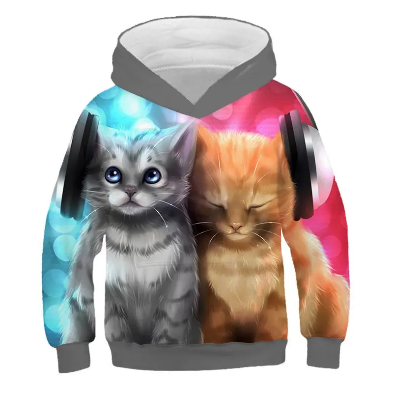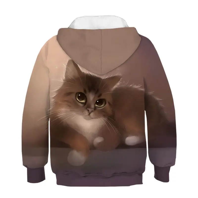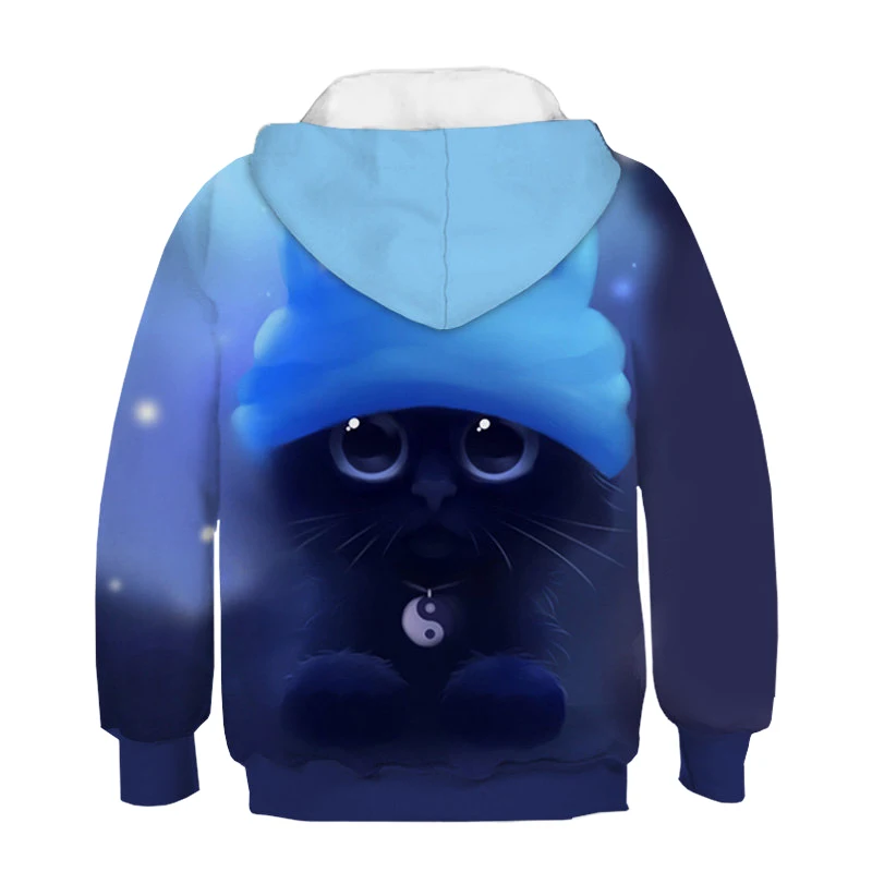 Детская толстовка с капюшоном, с изображением кота, осень 2020, теплая, для мальчиков, девочек-подростков, мультяшная, модная толстовка, повседневный пуловер, От 3 до 14 лет