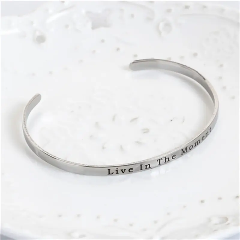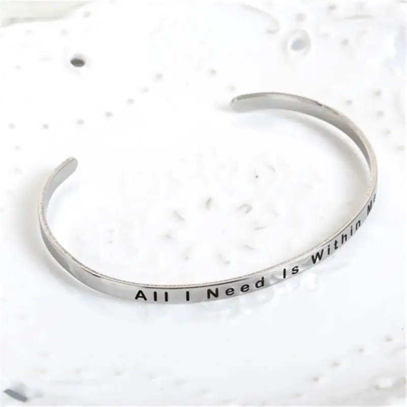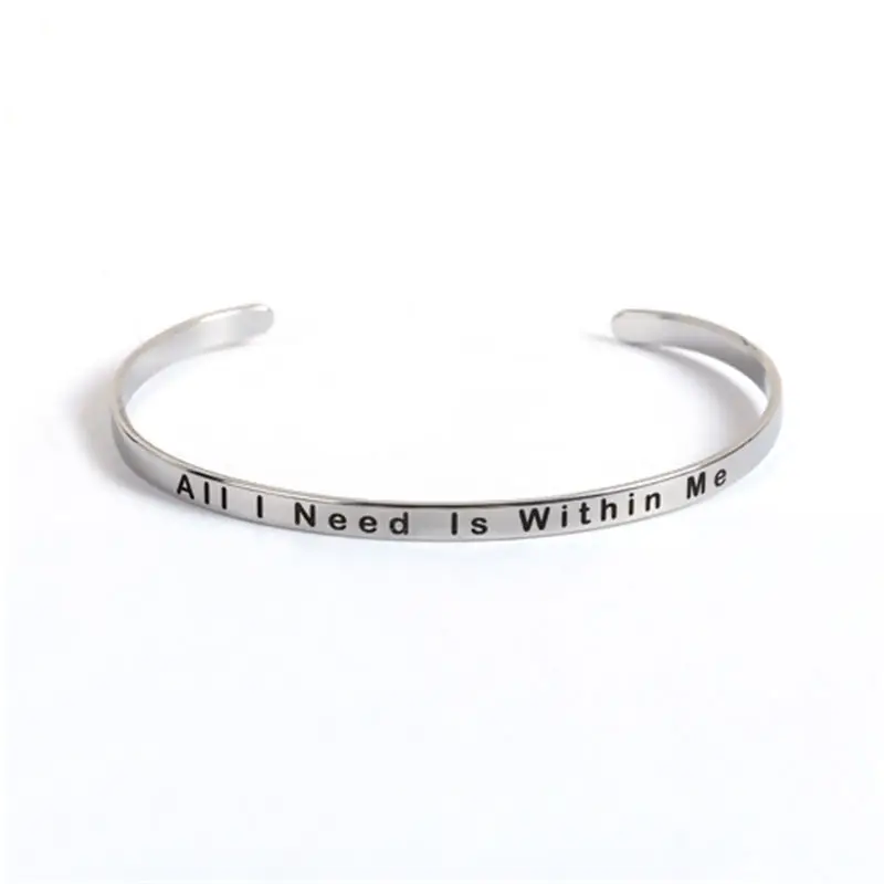 16,7 см длиной 1 шт. модные из нержавеющей стали положительные цитаты энергия открытый манжеты браслеты Браслеты серебряного цвета сообщения Ювелирные изделия Подарки