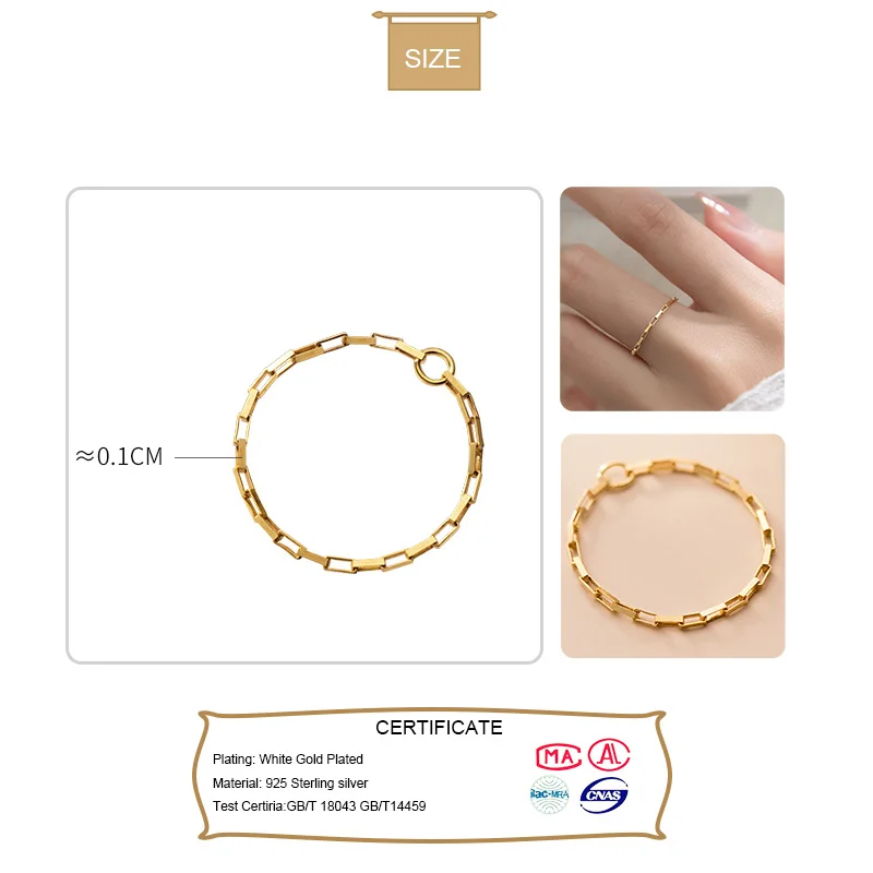 Кольцо женское из серебра 925 пробы, с золотой цепочкой, Размер 7, DS1166