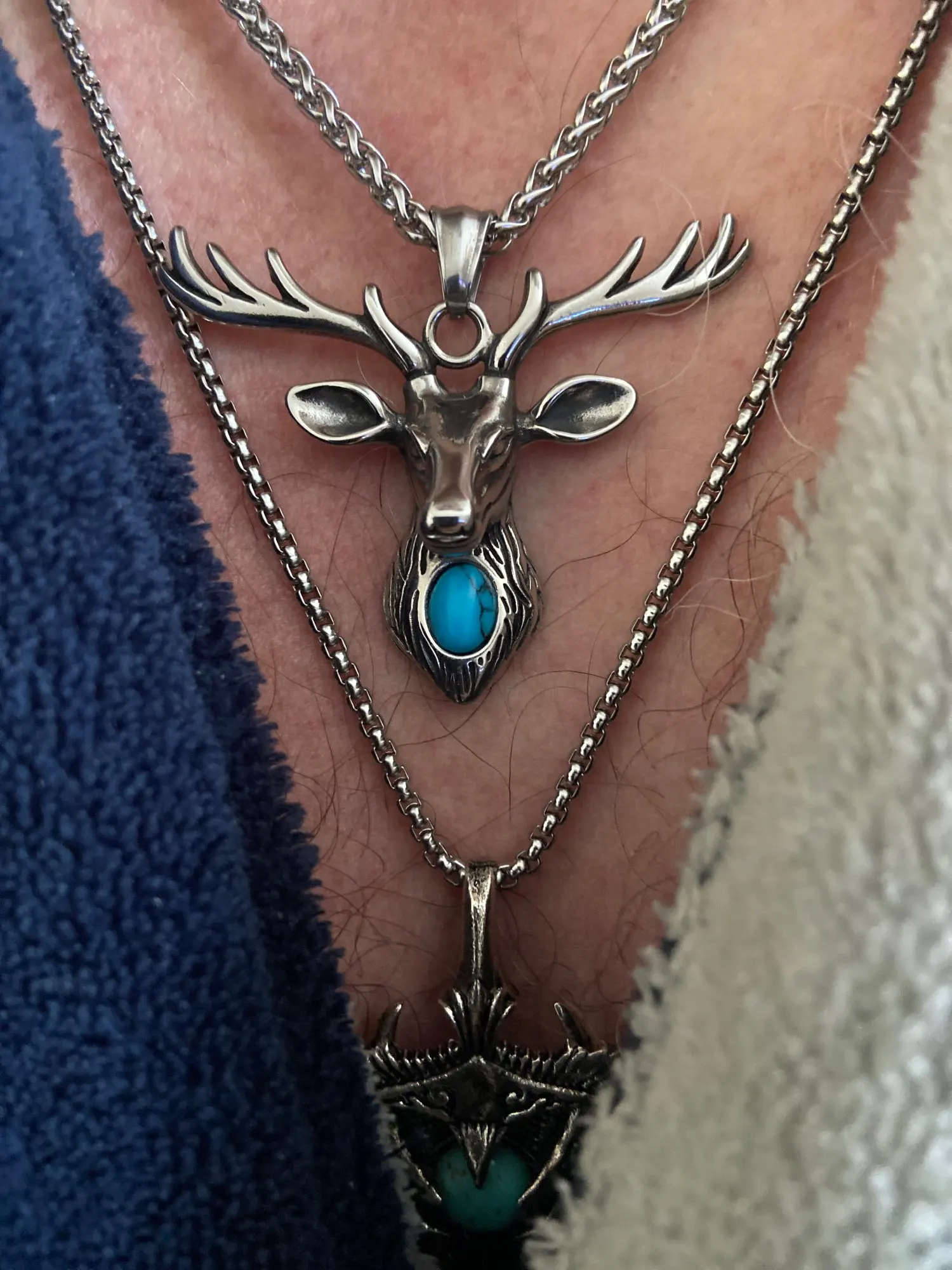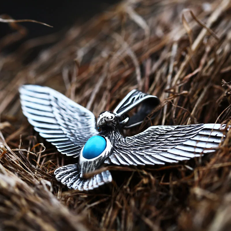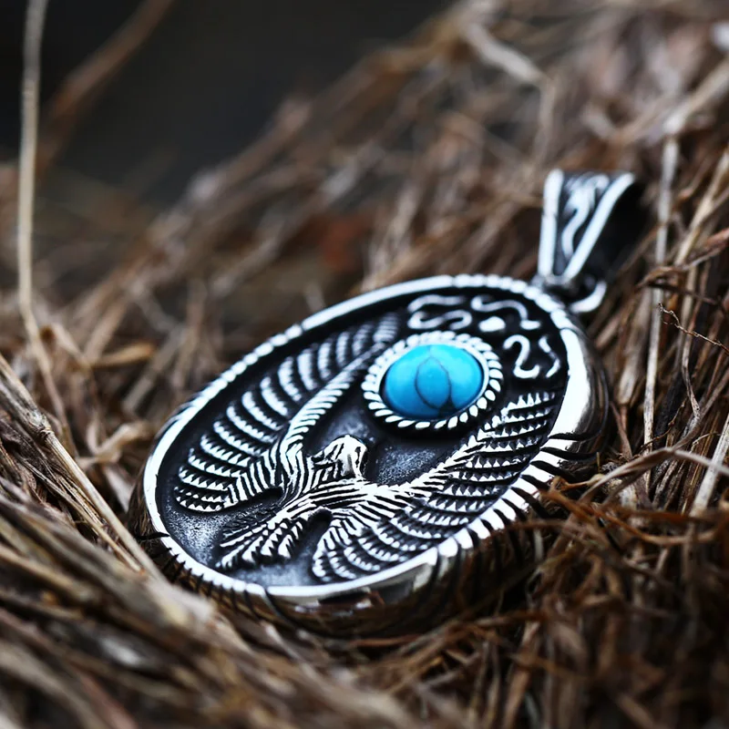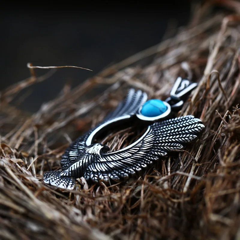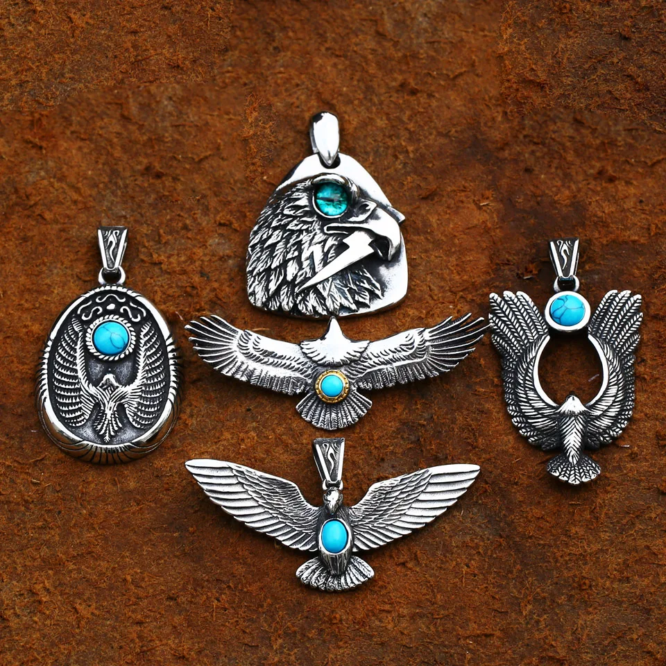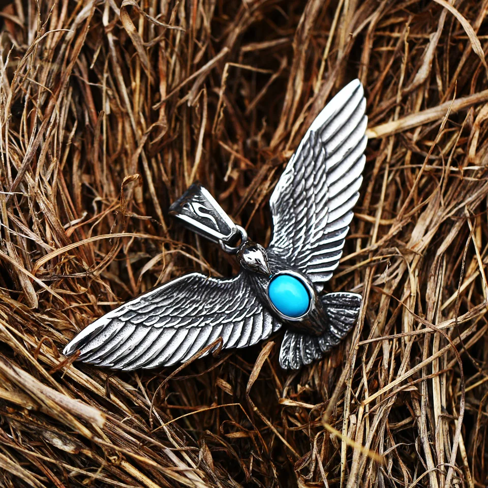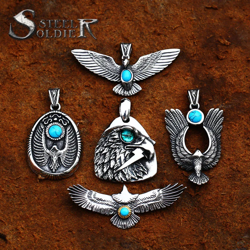 Стальной солдатский модный винтажный женский и мужской инкрустированный бирюзовый кулон с орлом из японского пера цепочка из нержавеющей стали ожерелье ювелирные изделия