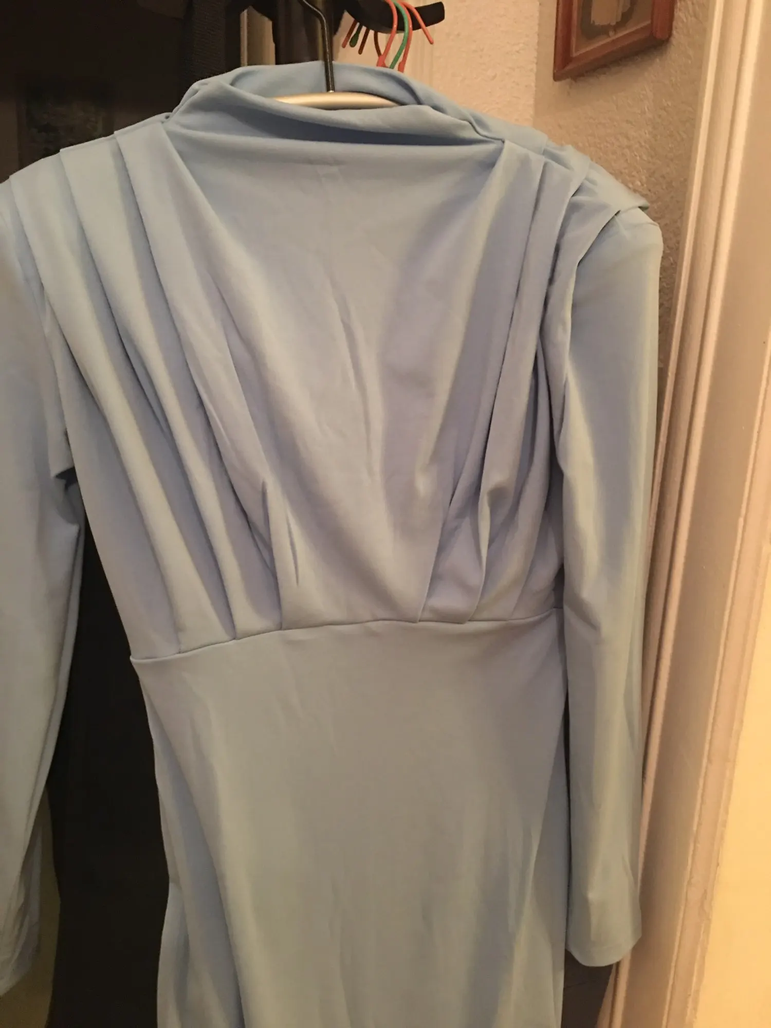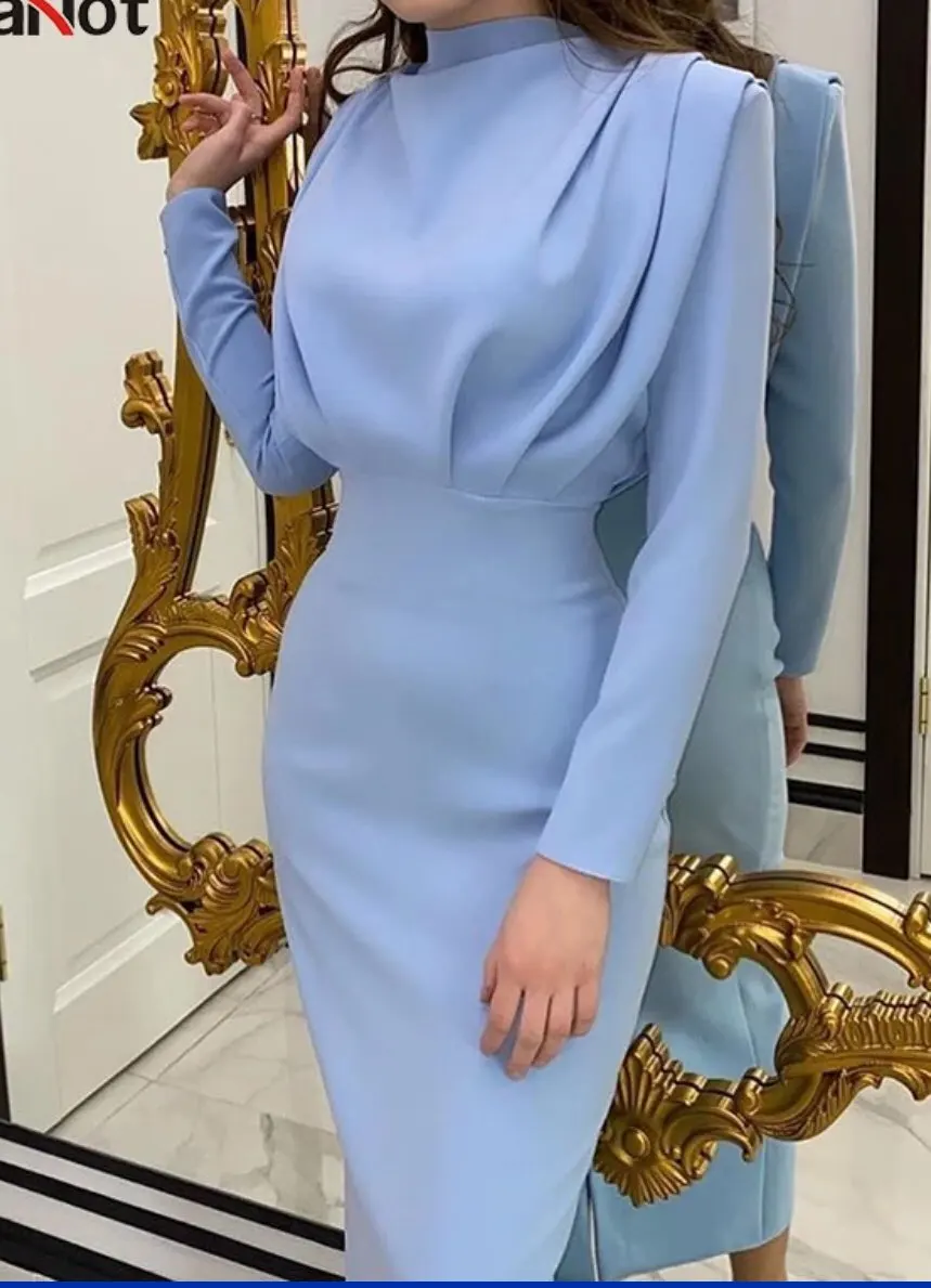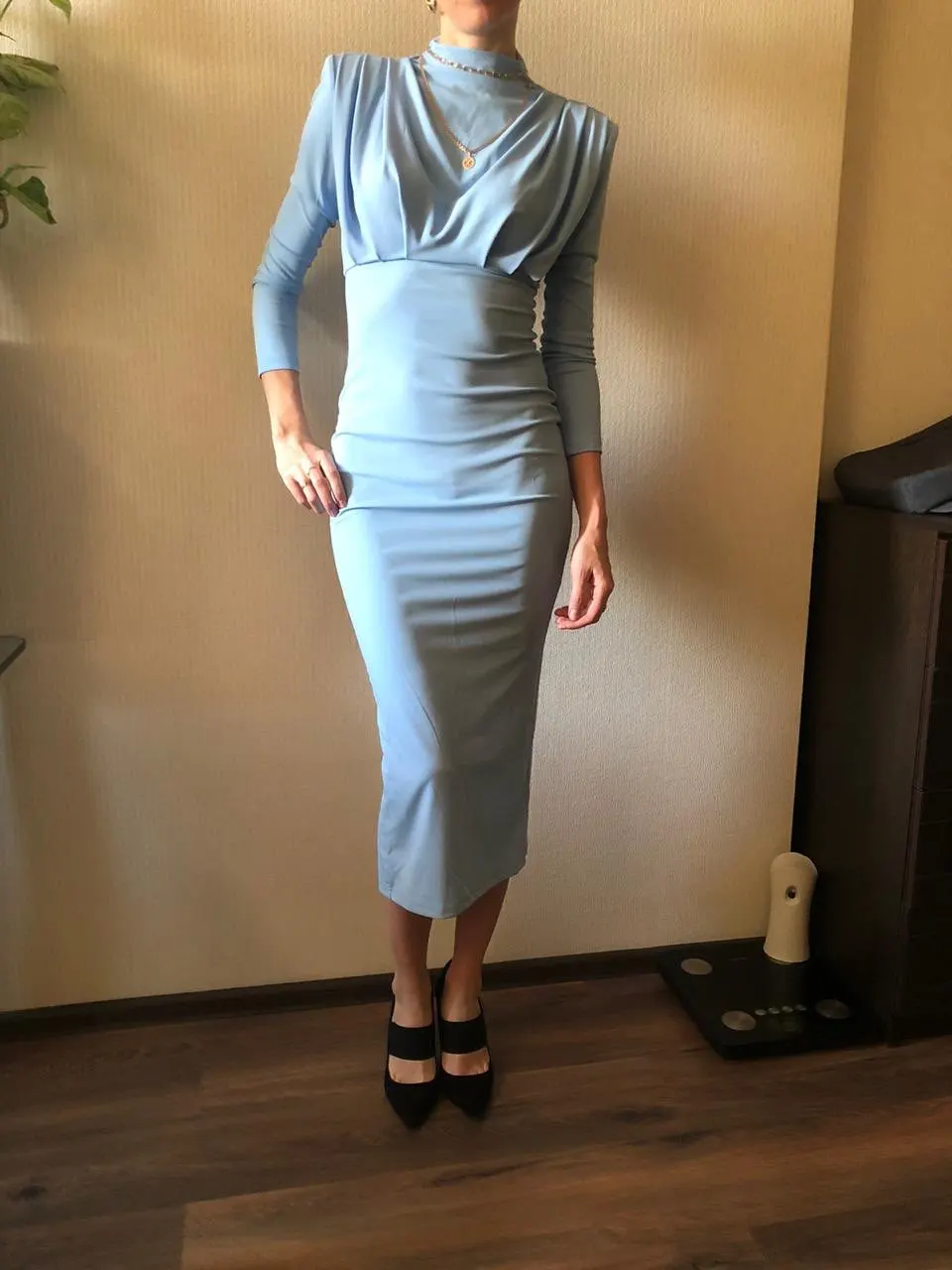Это красивое платье, эффектного синего цвета, которое выделяет силуэт. Ткань немного эластична, поэтому она идеально подходит. Прямо как на картинках!