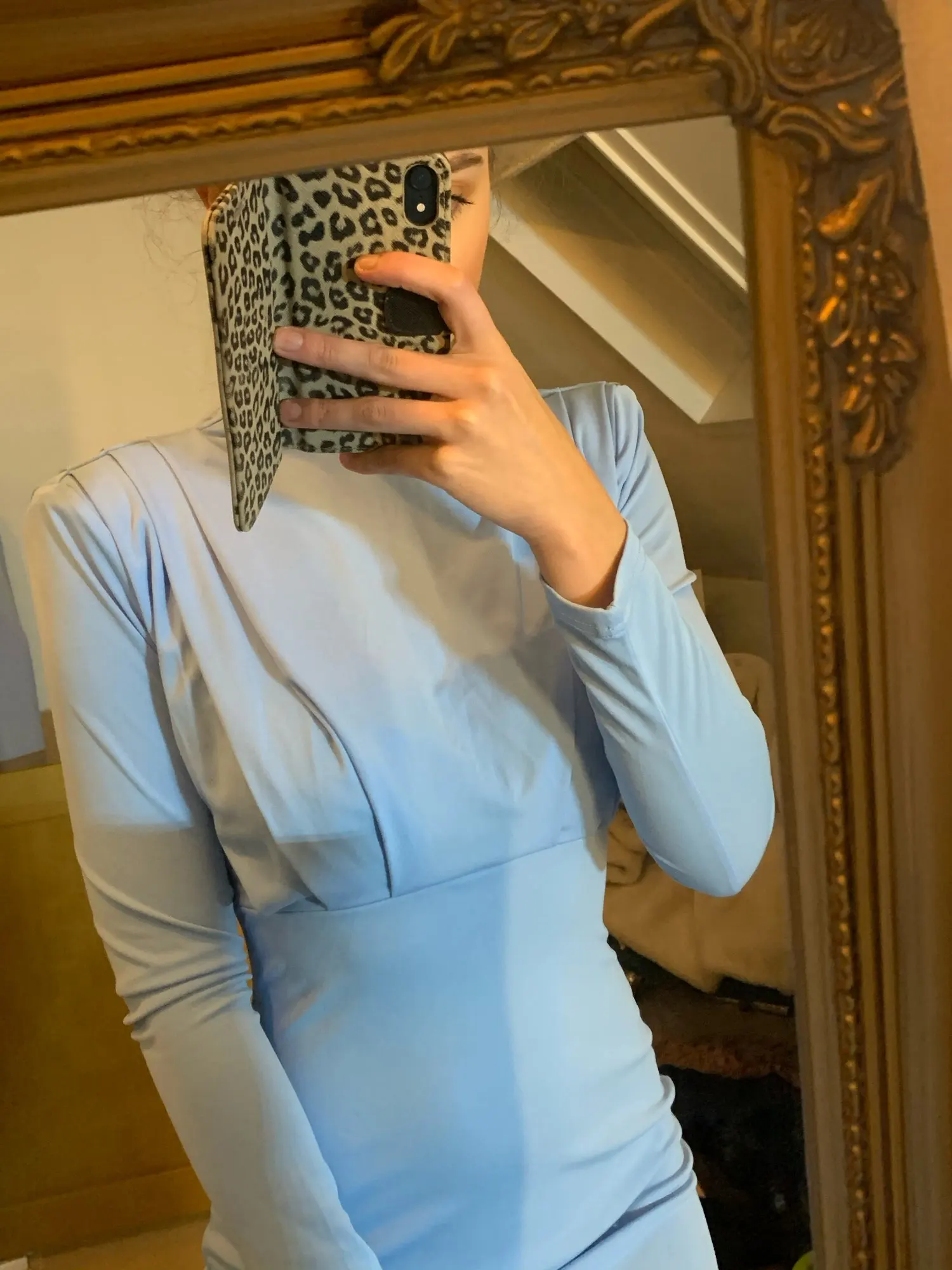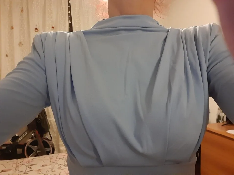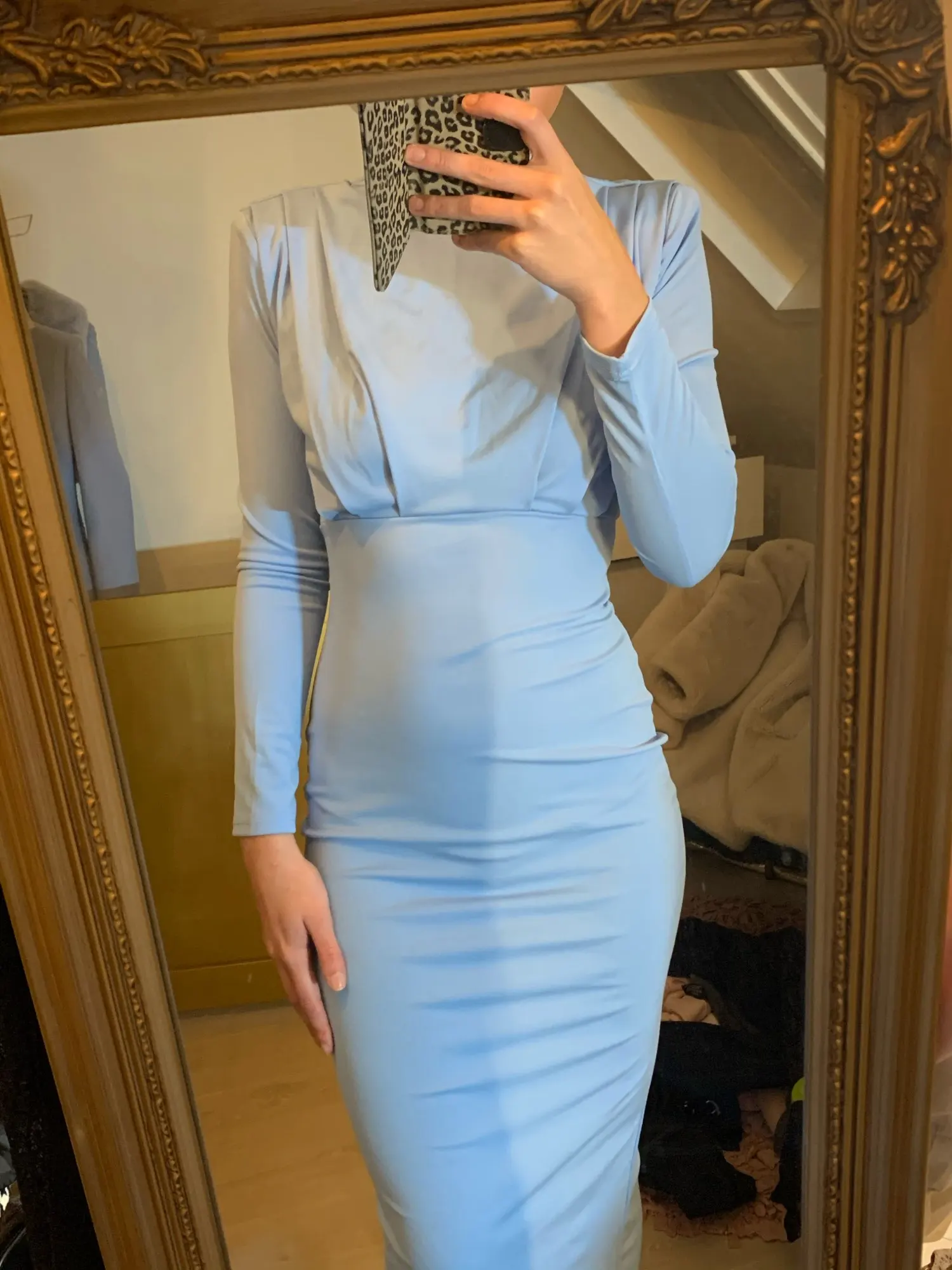 Это красивое платье, эффектного синего цвета, которое выделяет силуэт. Ткань немного эластична, поэтому она идеально подходит. Прямо как на картинках!