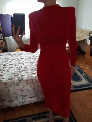 Это второе, что я покупаю и подтверждаю, что это красивое платье с большим содержанием. Цвет не совсем бордовый, а просто Милая Красная Вишня. Синтетическая ткань с хорошей эластичностью, хорошо шитая и готовая, без дефектов, пятен или неприятных запахов. Длина около 132 см, размер M, мой рост 174 см, 59 кг, 90 см, талия 69 см и бедра 94 см. Не было ни карманов, ни молнии, легко носить, с маленькими накладками на плечах, что еще больше улучшает силуэт. Крупный продавец, Бесплатная быстрая доставка и печать. Великолепные женские тонкие туфли на высоком каблуке под заказ. Конечно эффект... я настоятельно рекомендую его.