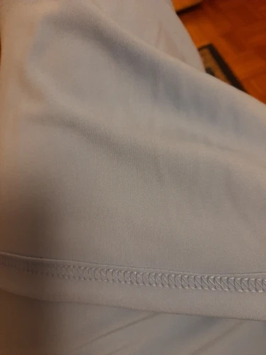 Выглядит так же, как на фото, мне пришлось разрезать его на рубашку, потому что она была плотно на моем теле от бедер вниз и очень длинная.