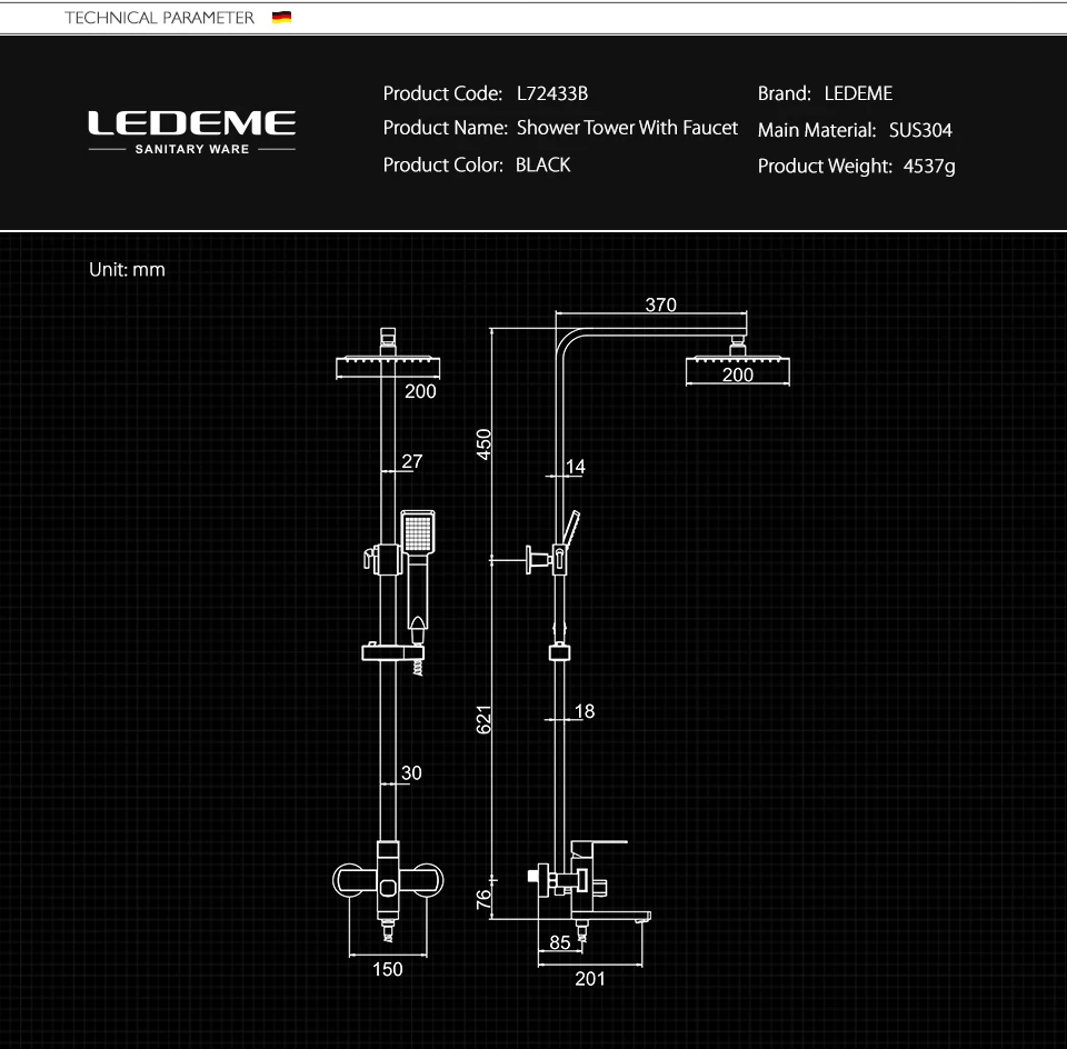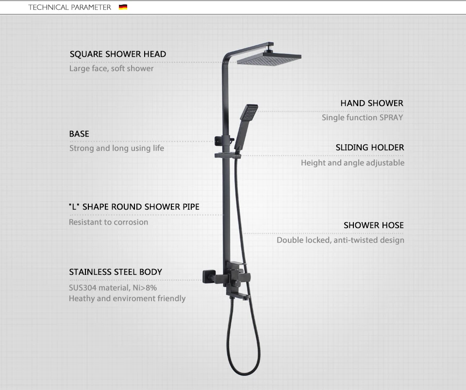Душевая система LEDEME L72433B однорычажный матовый
