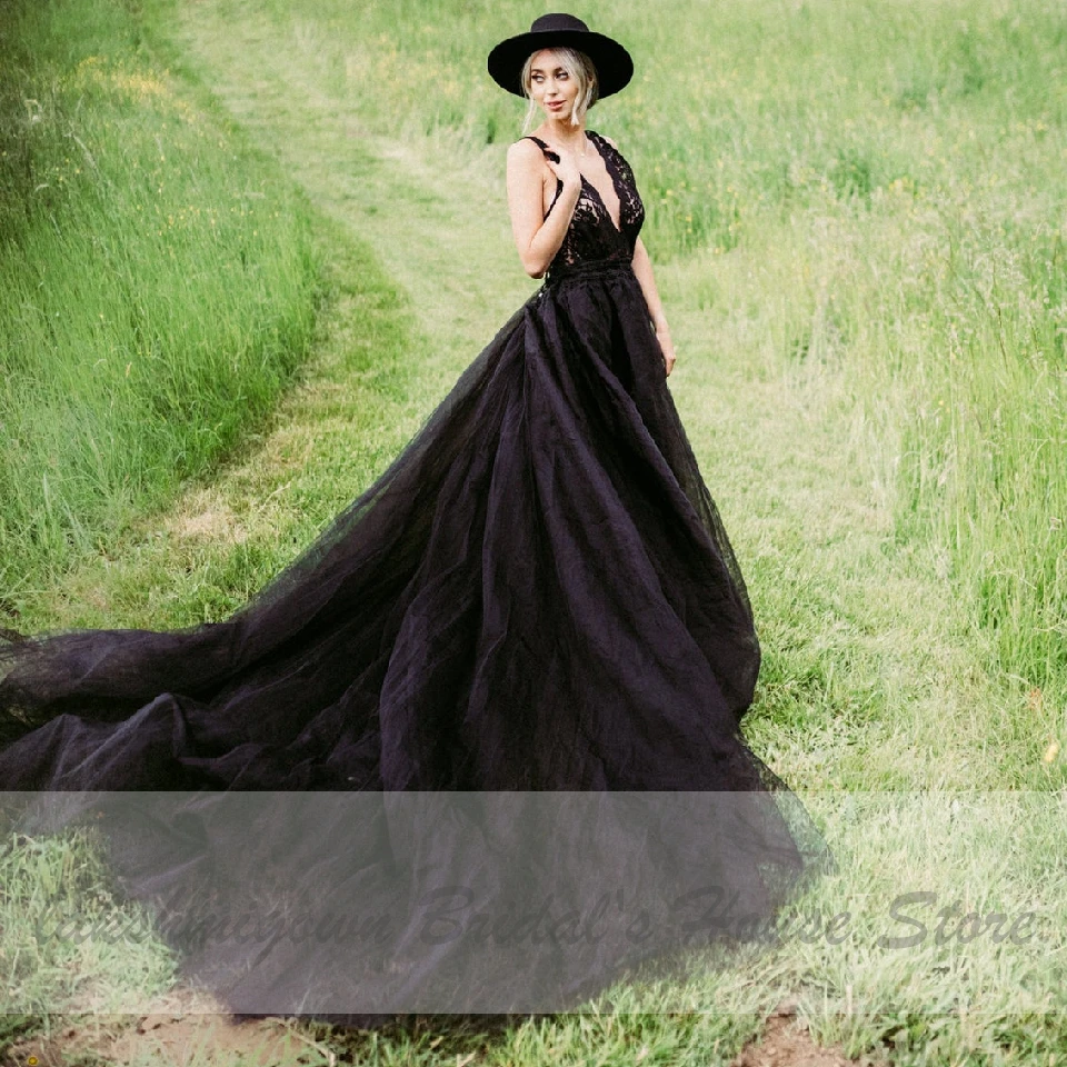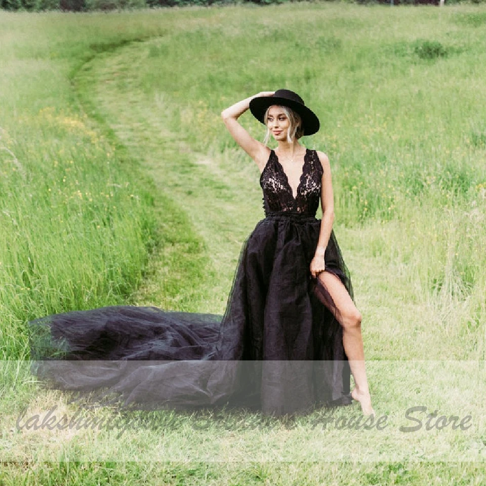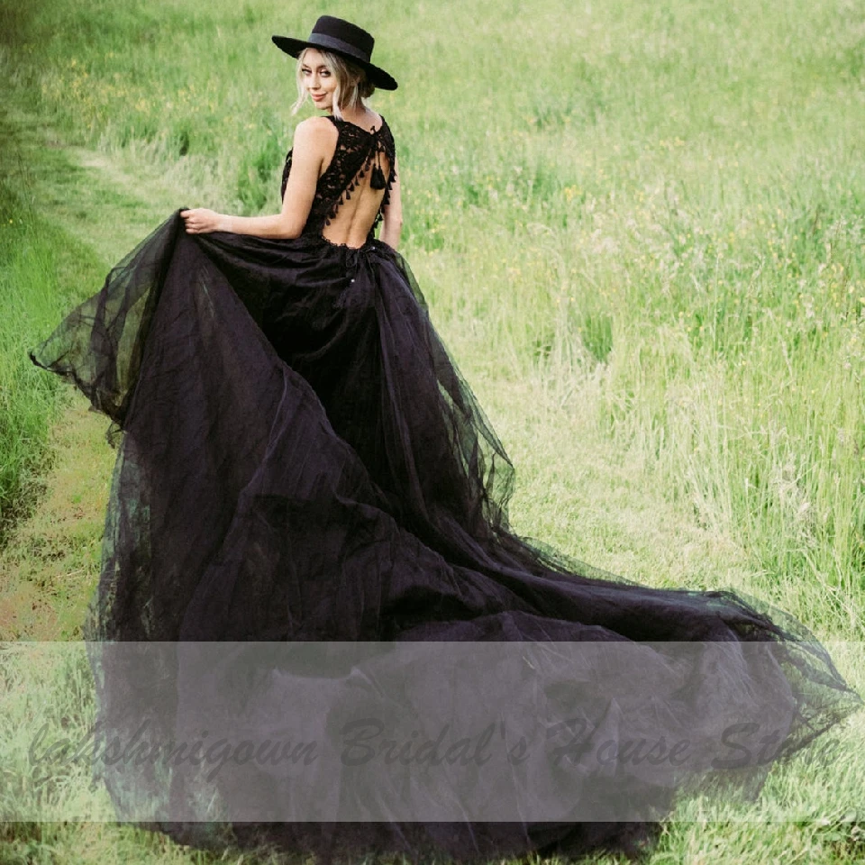 Lakshmigown, готическое черное свадебное платье 2021, халат белой, сексуальное свадебное платье, кружевной лиф, бохо, искусственное платье с открытой спиной