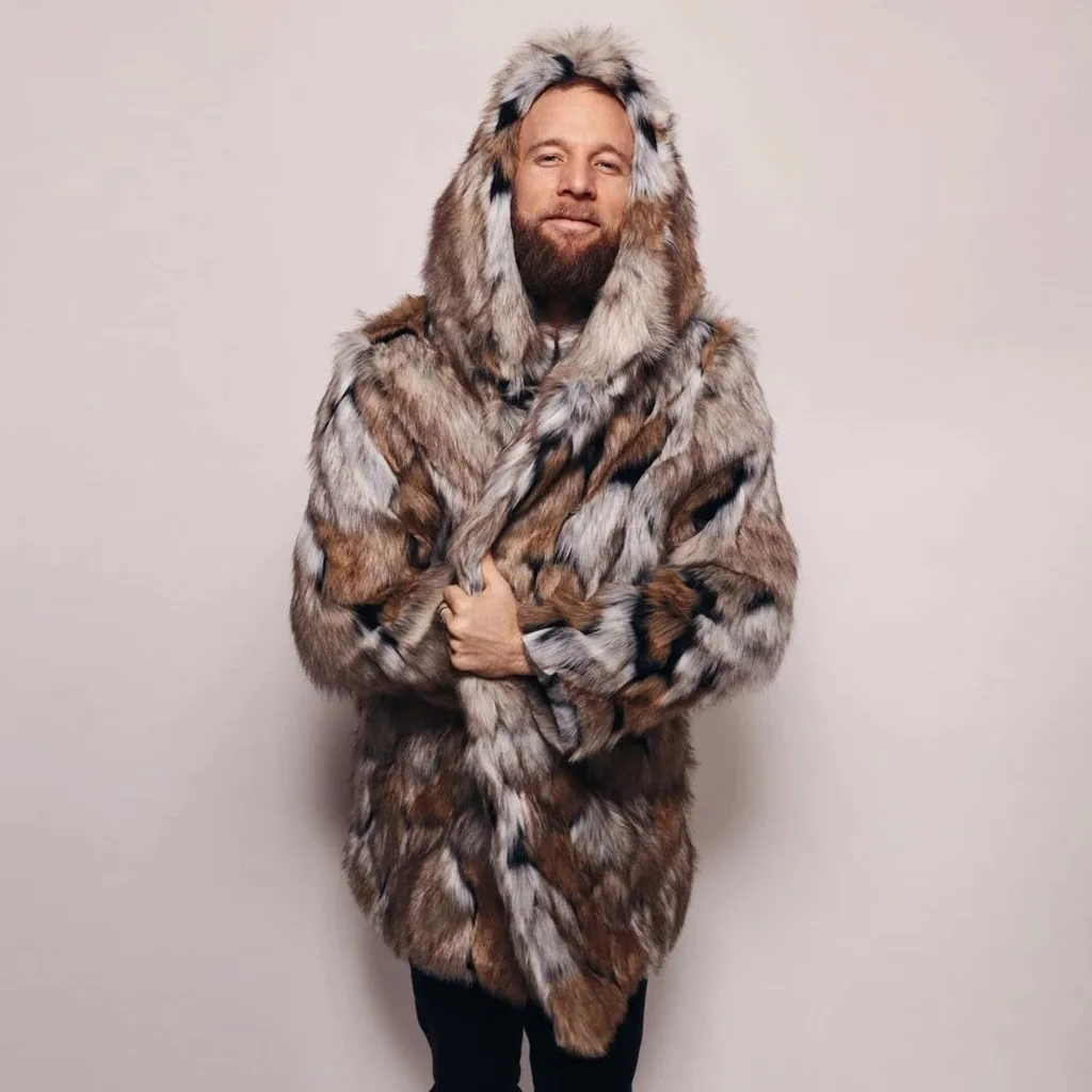 Модное мужское теплое леопардовое пальто с капюшоном, куртка из искусственного меха, верхняя одежда, мужское теплое пальто с капюшоном # g30