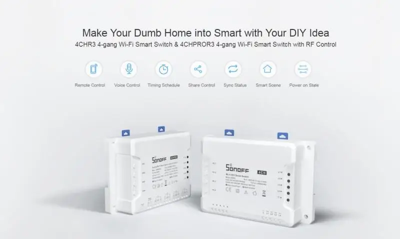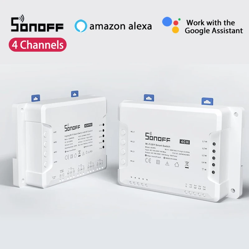 Оригинальный sonoff 4CH R3 PROR3 умный DIY WiFI переключатель 4 канала din-рейка Монтажная поддержка eWelink приложение работает с Alexa Google Home