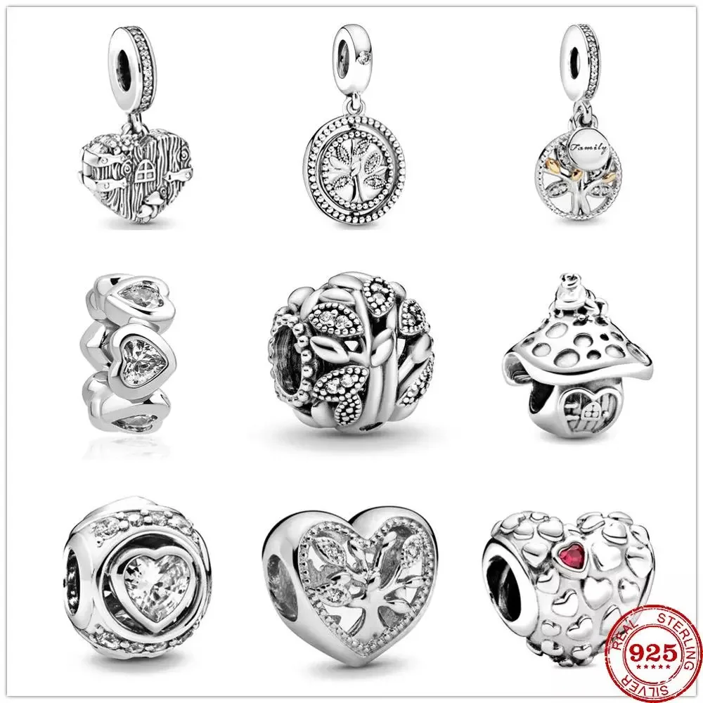 Подходят для оригинального браслета Pandora, искусственное серебро, семейное дерево, любовь, сердце, подвеска, бусина, сделай сам, изготовление ювелирных изделий