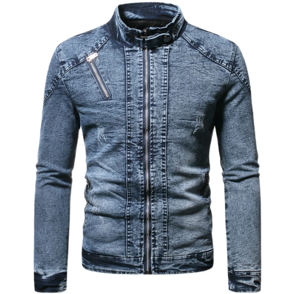 Джинсовая куртка мужская Байкерская, модная однотонная Байкерская д...