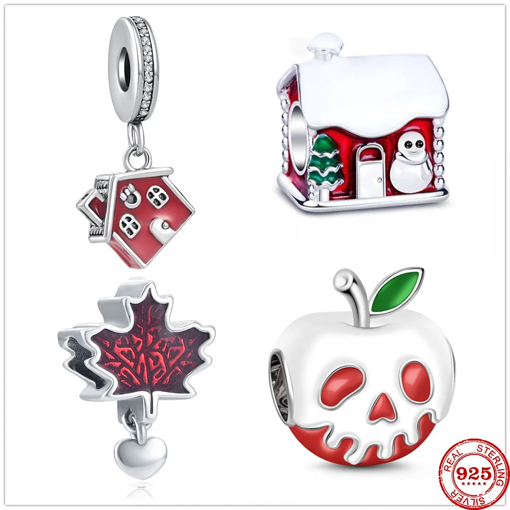 Шармы-подвески в виде домика Санта-Клауса, яблока, из серебра 925 пробы, подходят для браслета Pandora, оригинальные ювелирные изделия, рождественские подарки