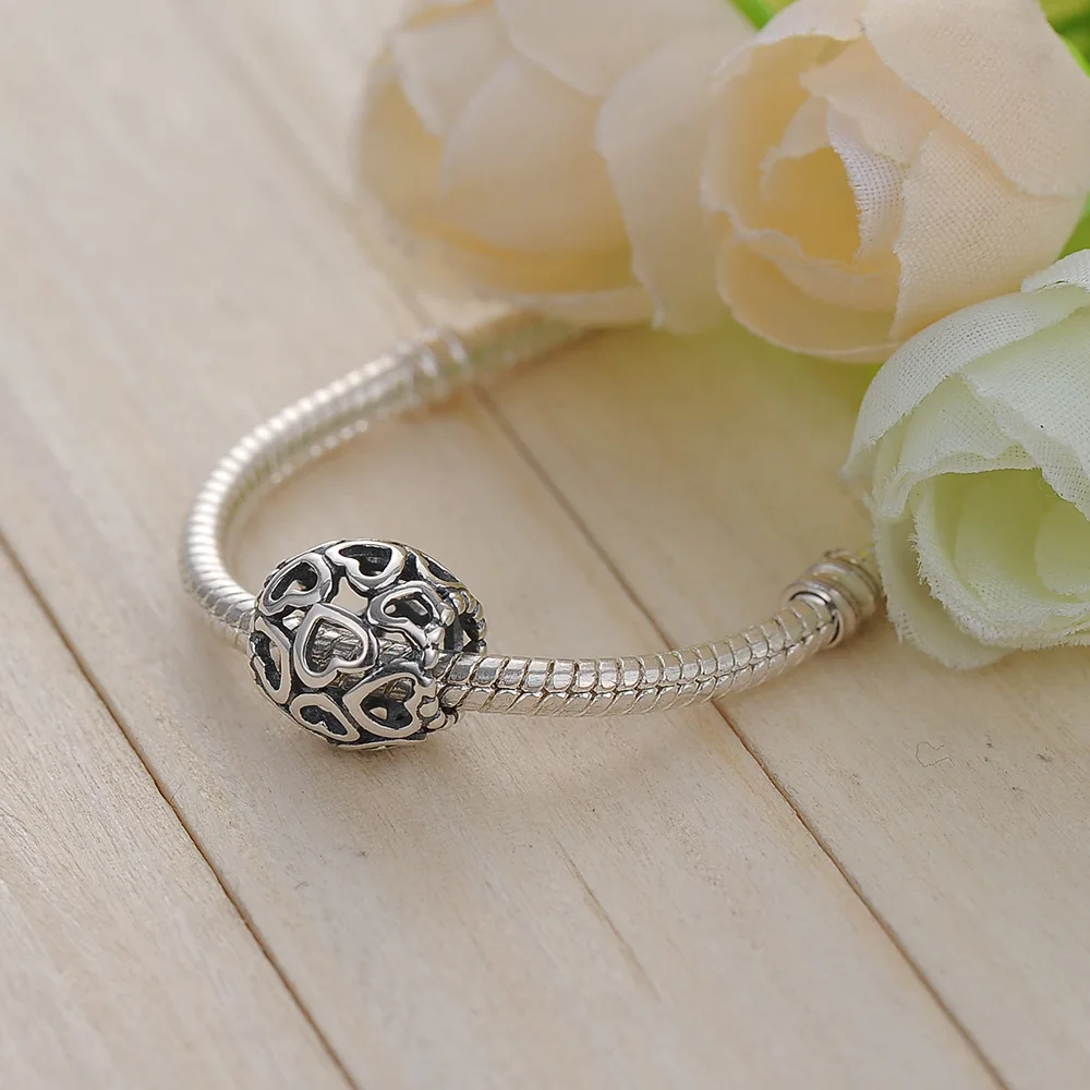 Браслет Pandora из серебра 925 пробы с перфорацией, с цветочным узором