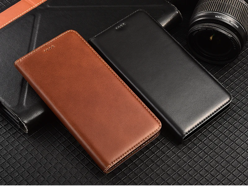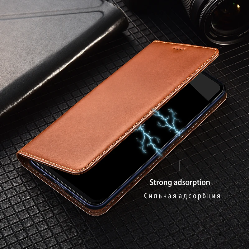 Magnet Natural Genuine Leather Skin Flip Wallet Book Phone Case Cov...