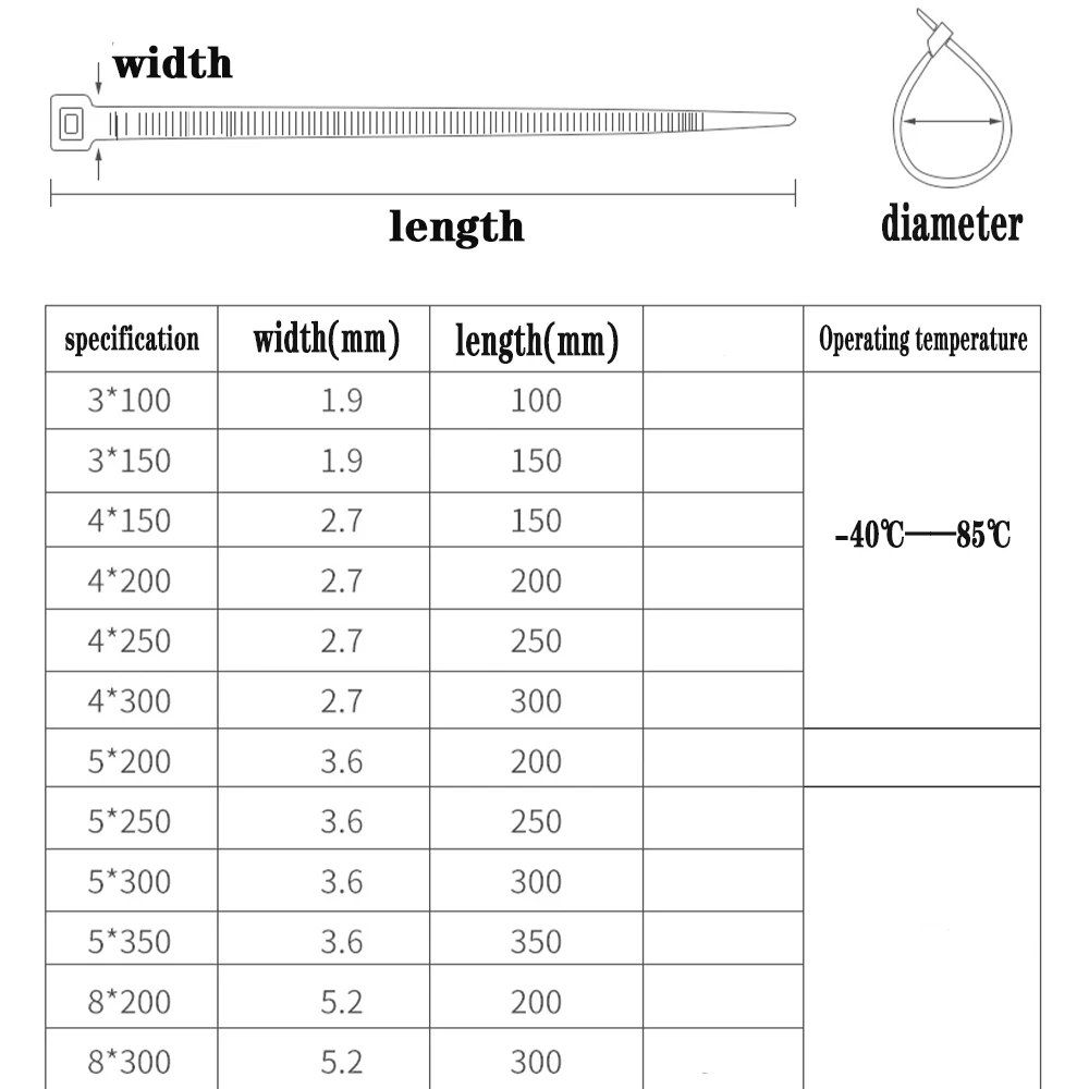 Нейлоновый хомут для кабеля, 100 шт., самоблокирующийся, черный, пластиковый, обмотка кабеля хомут, фиксированный, различные характеристики, 3x200, 5x300