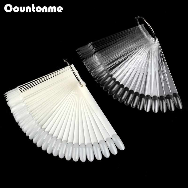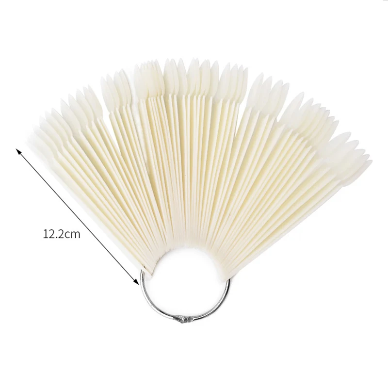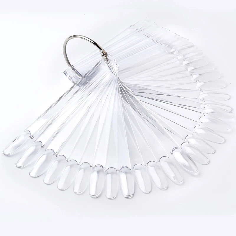 Особенности: Количество: 50 шт. один комплект Цвет: прозрачный/натуральный Форма: овальная головка Хорошо подходит для отображения лака для ногтей или дизайна ногтей Профессиональные инструменты для ногтей Подходит для маникюрного салона, ногтевого искусства школы/колледжа, личного использования, оптовой торговли и т. д. Посылка включает в себя: 1 Набор веер для маникюра