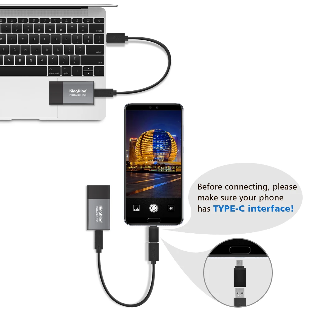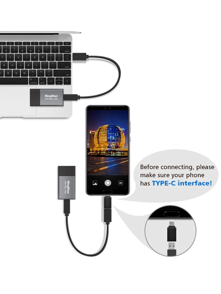 KingDian твердотельный накопитель Портативный SSD 120 ГБ 250 500 1 ТБ 2 ТБ Винчестер внешнего твердотельного накопителя с USB3.0 для Тип-C