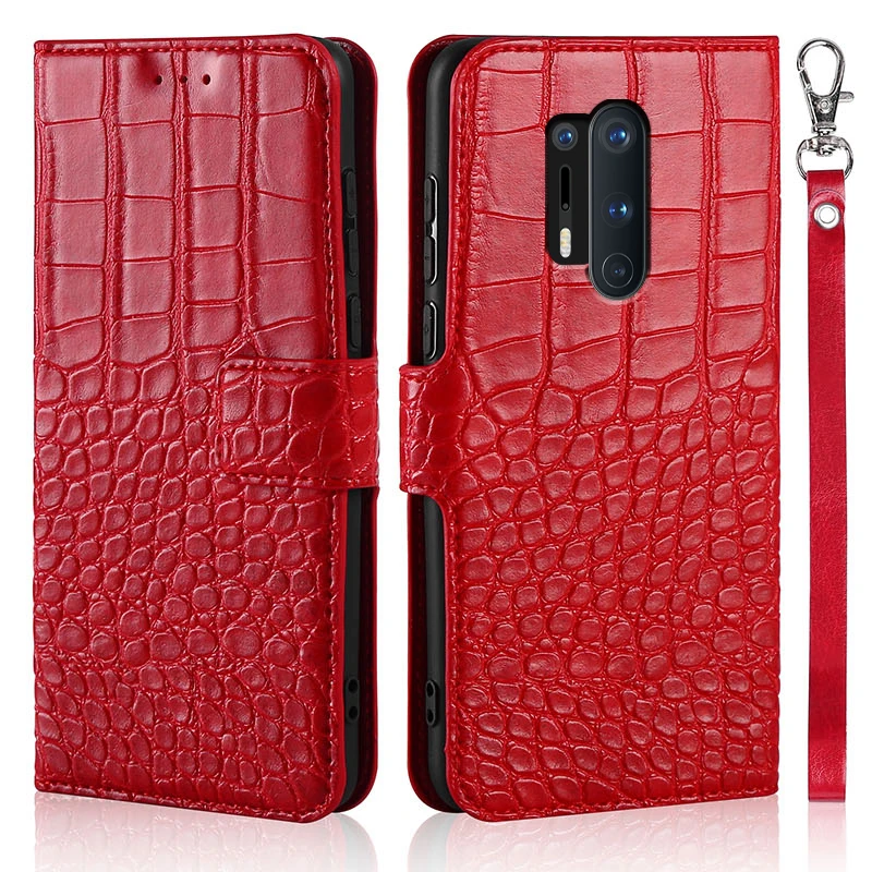 Роскошный чехол-книжка для Oneplus 8 Pro, кожаный чехол-книжка с текстурой крокодиловой кожи, чехол для телефона с ремешком и держателями карт