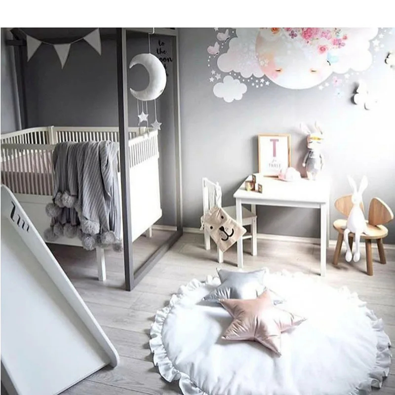 Игровые коврики для новорожденных, мягкий хлопковый коврик для ползания, игровые скандинавские коврики для девочек, Круглый напольный ковер для детей, декор интерьера комнаты