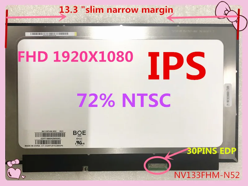 Лидер продаж для BOE NV133FHM-N52 N62 B133HAN04.2 ЖК-дисплей Дисплей светодиодный Экран Матрица для ноутбука 13,3 30pin FHD 1920X1080 мониторов и прочих факторов BOE06B7 IPS
