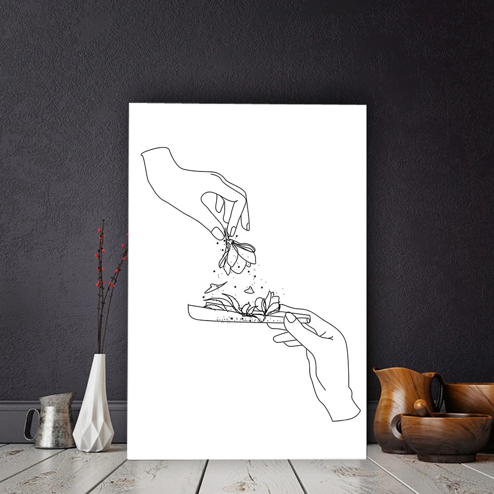 Линии искусство рисования травы зависимость холст картины сорняк курильщиков травяной плакаты с листьями и принты настенные картины для Гостиная