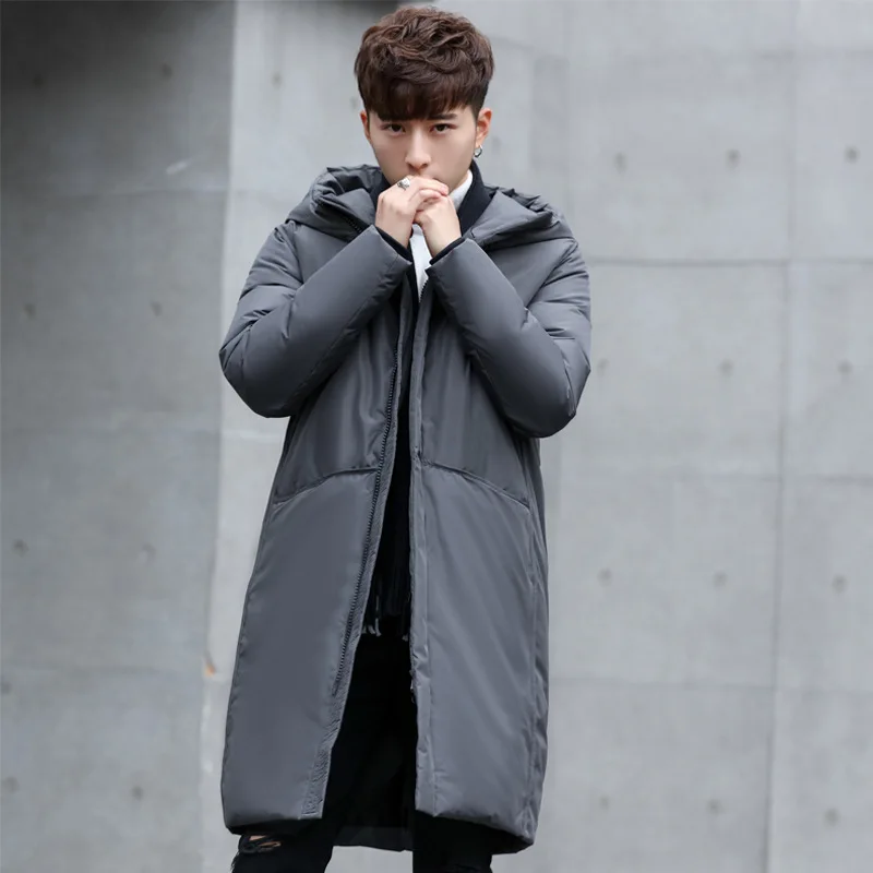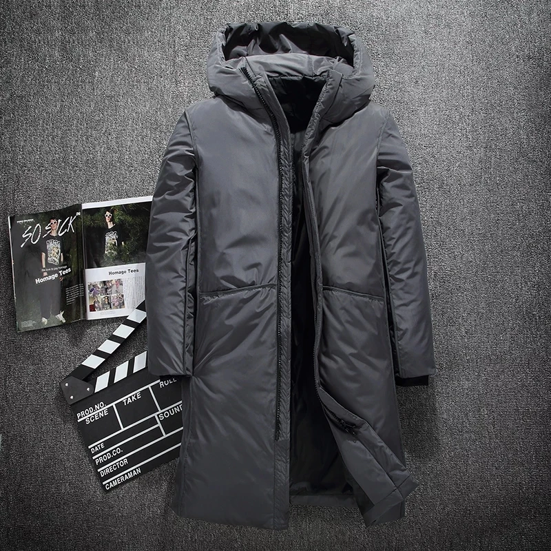 Мужской пуховик с капюшоном, длинный теплый белый пуховик, зима 2021