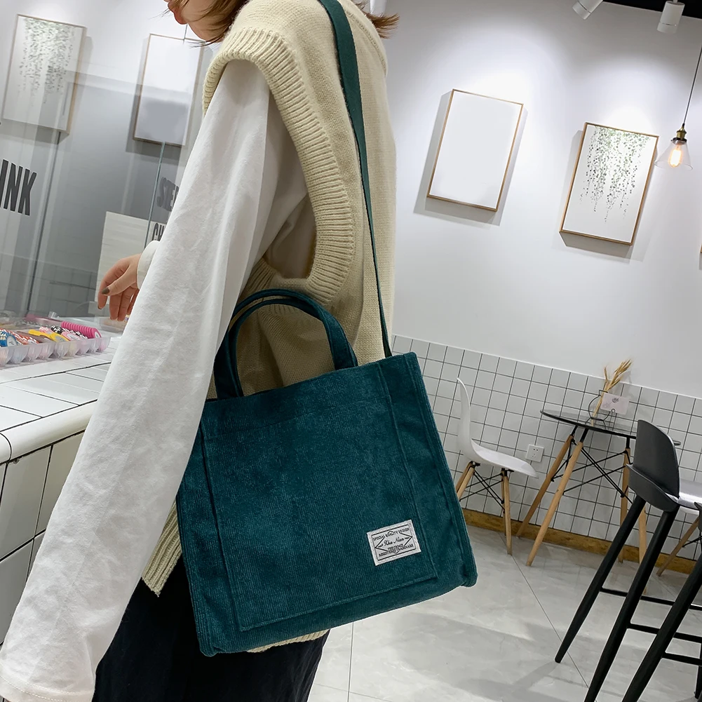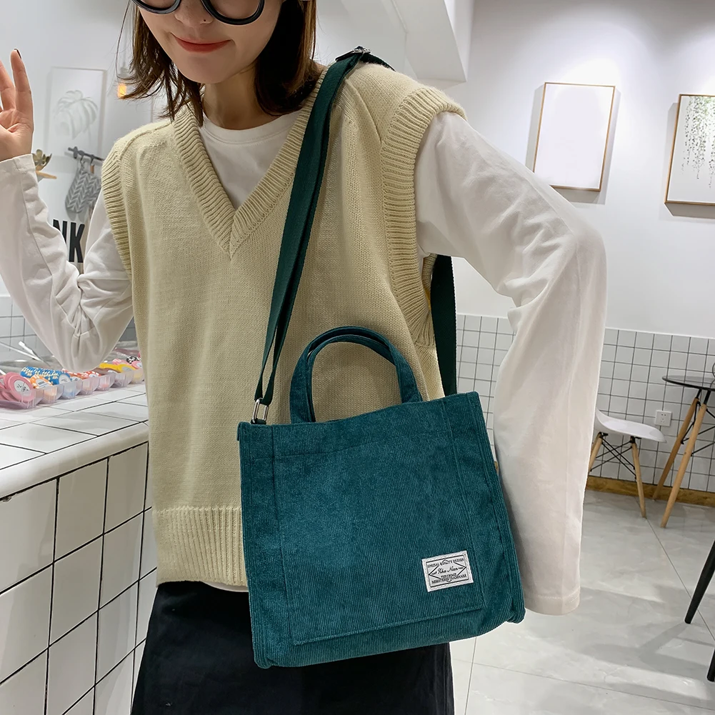 Сумка на плечо Женская холщовая, Вельветовая саквояж-тоут большой вместимости, Повседневная Экологически чистая сумочка-тоут, мессенджер через плечо, 2021