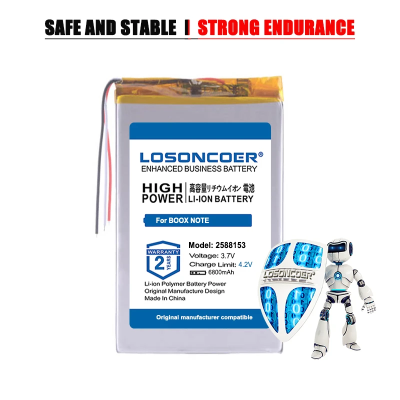 Описание: для ONYX BOOX NOTE,PRO,NOTE + электронная книга Li-po перезаряжаемый аккумулятор CE стандарт безопасности и окружающей среды: двойные функции защиты. Двойная IC и PCB электрическая плата защищают от разряда заряда и короткого замыкания. Аккумулятор того же размера, что и оригинальный аккумулятор.Бренд LOSONCOERБатарея Все продукты 100% абсолютно новые, мы тестируем батареи профессиональным оборудованием перед отправкой, транспортируем нас через хорошую упаковку. Когда вы оплатите свой заказ, мы быстро обработаем заказ и отправим его. Пожалуйста, будьте уверены в покупке, продукт имеет двухлетнюю гарантию.
