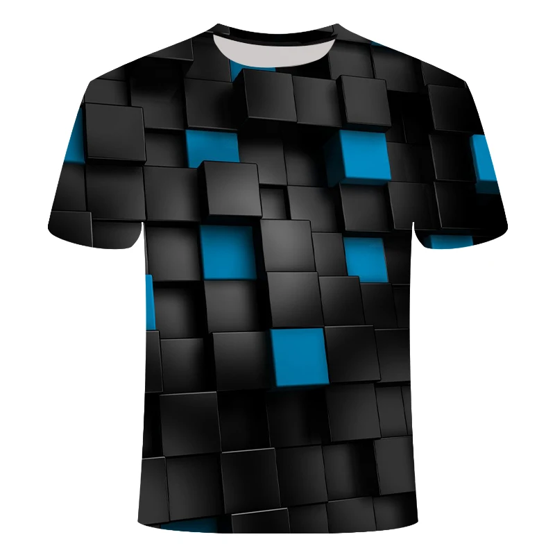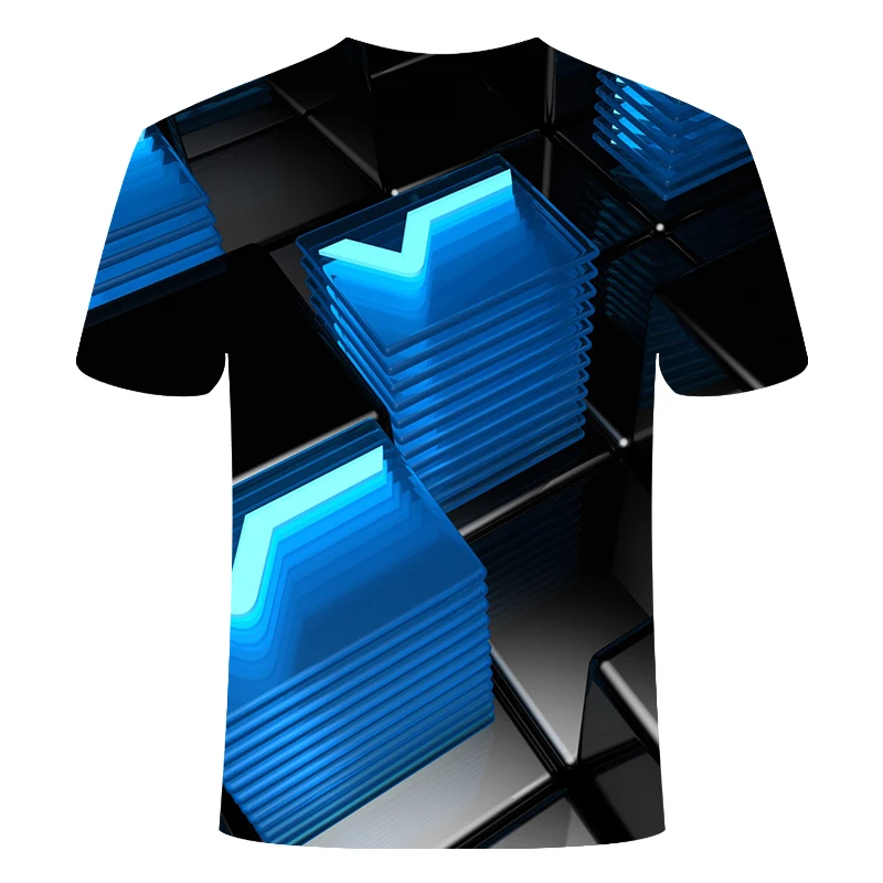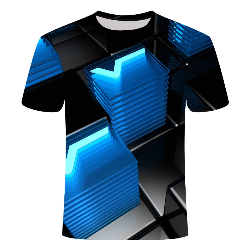Темно-синяя флуоресцентная футболка с 3d принтом, Мужская черная кв...