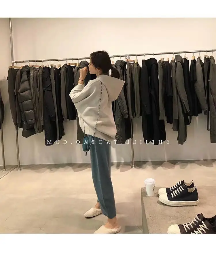 Новинка, комплект из двух предметов, женские костюмы оверсайз, комплект с широкими штанинами, толстовка с капюшоном, Женское пальто, Осенний флисовый пуловер в стиле Харадзюку, флисовый