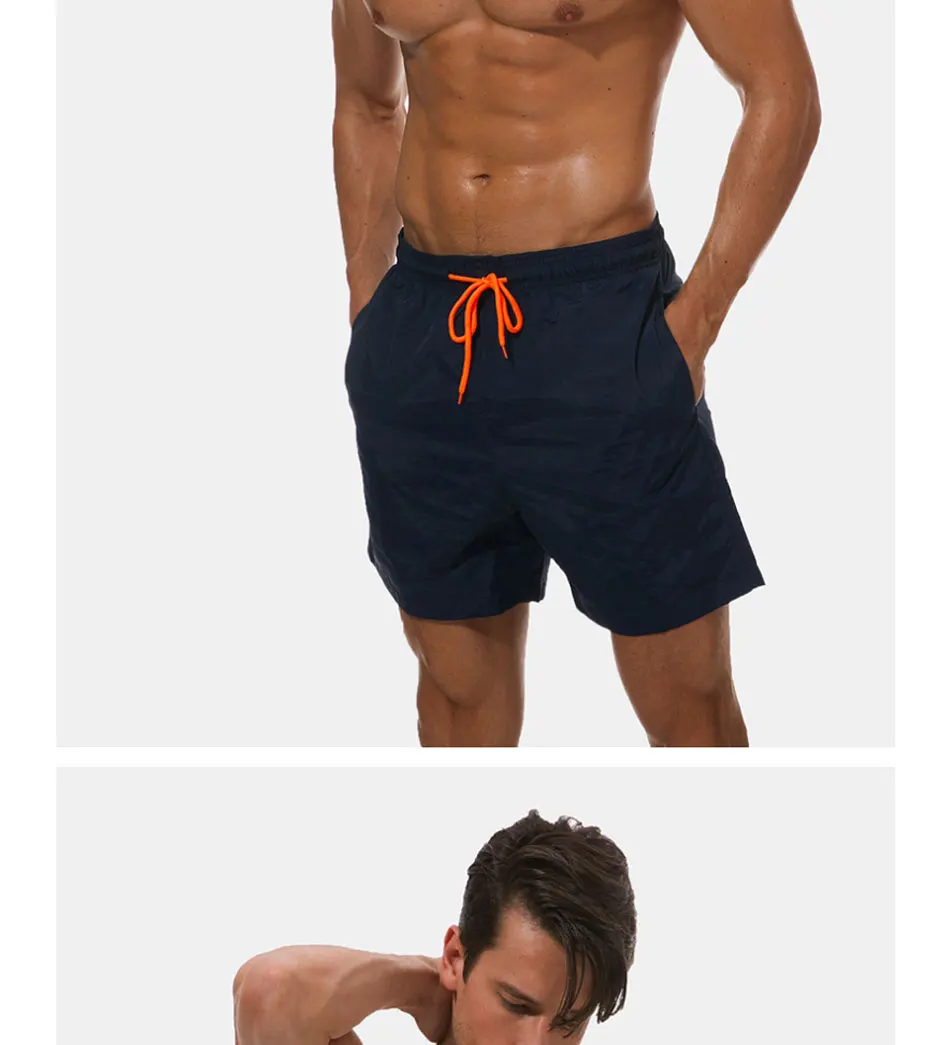Мужские плавки, быстросохнущие пляжные шорты с карманами и сетчатой...