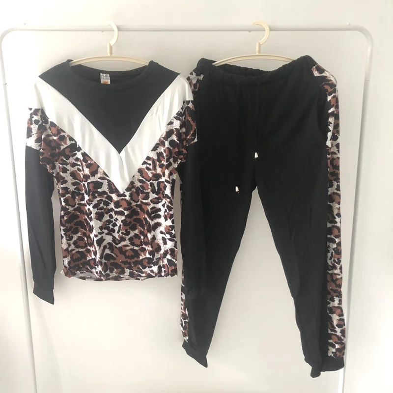 Женский спортивный костюм из 2 предметов, Леопардовый свитшот и брю...