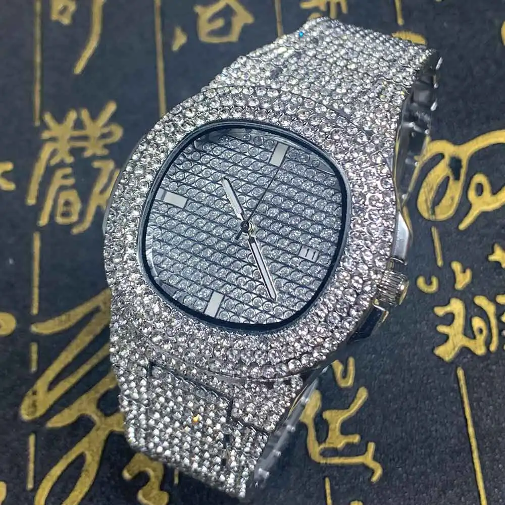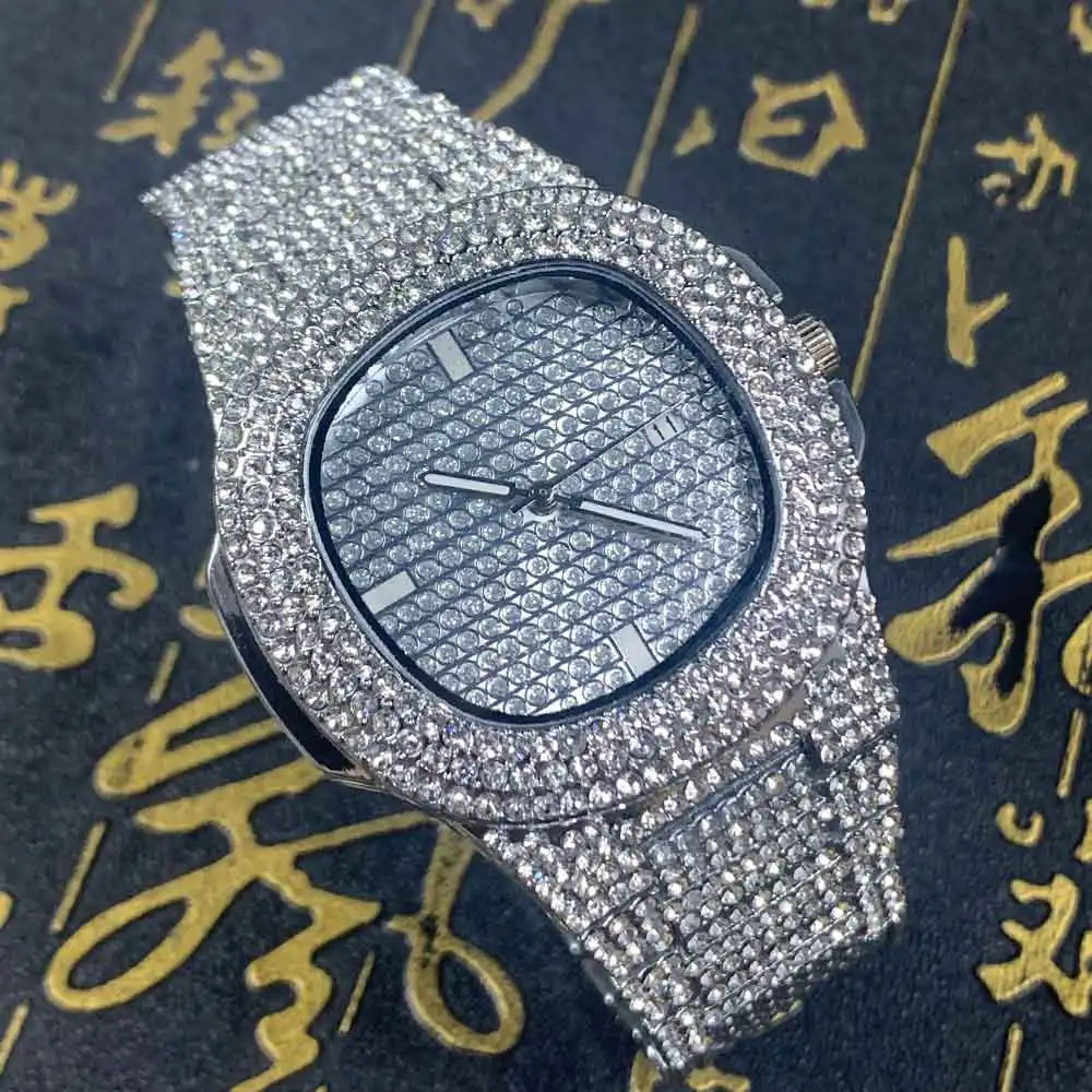 Часы наручные мужские со стразами, модные, золотистые, в стиле хип-хоп, 2021