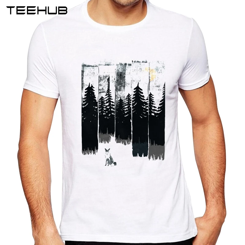 Мужская хипстерская футболка с принтом, с коротким рукавом, с изображением лисы в дикой ночи, футболка классная