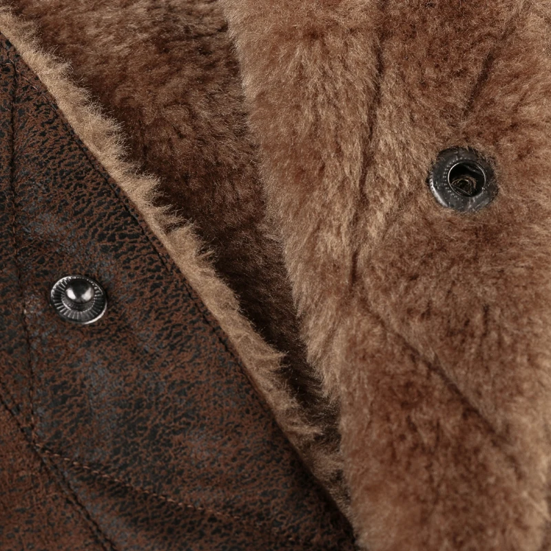 Мужская замшевая кожаная куртка, с меховой подкладкой, в стиле ретр...