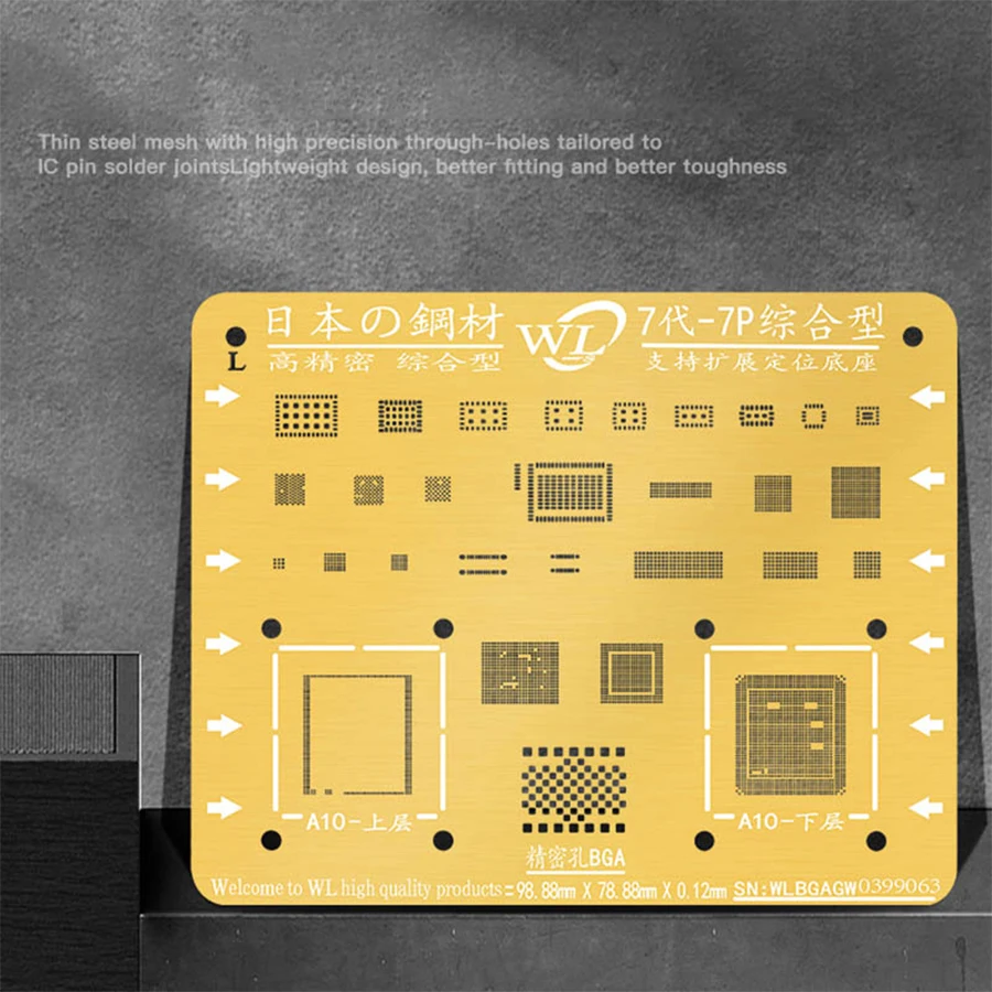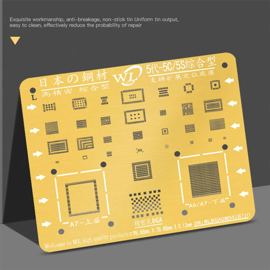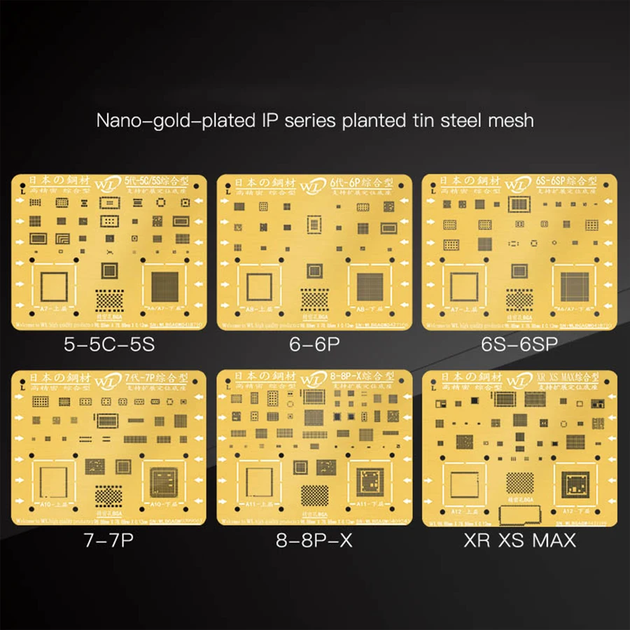 Поглащающей нагрузкой Золотой BGA реболлинг Трафарет Комплект 0,12 мм толщина оловянной сетки для пайки шаблон iPhone XSMAX XS XR X 8 8P 7 7 6 6 S 5 5S