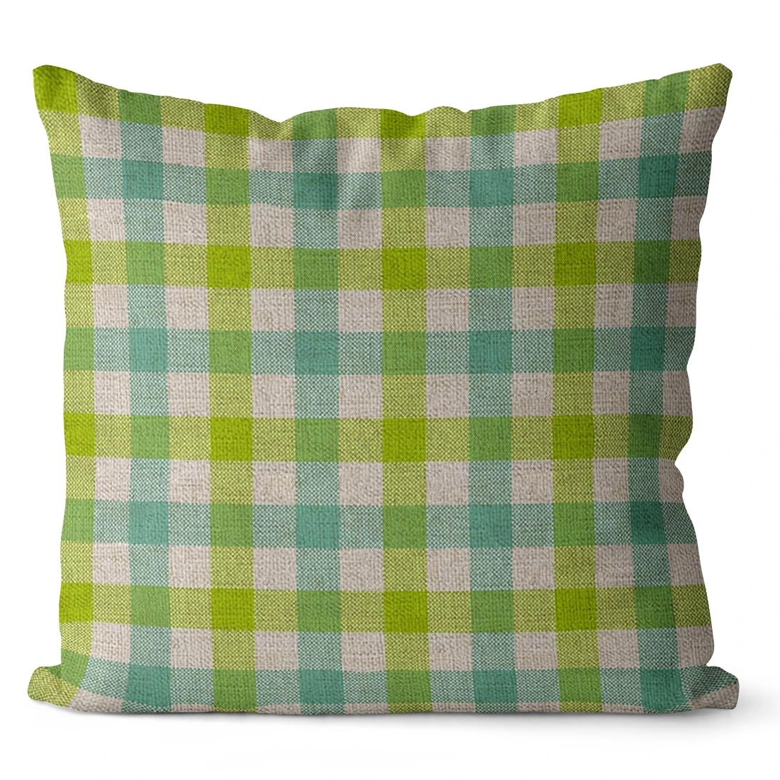 Чехол для подушки, льняной, в клетку буйвола, синий, зеленый