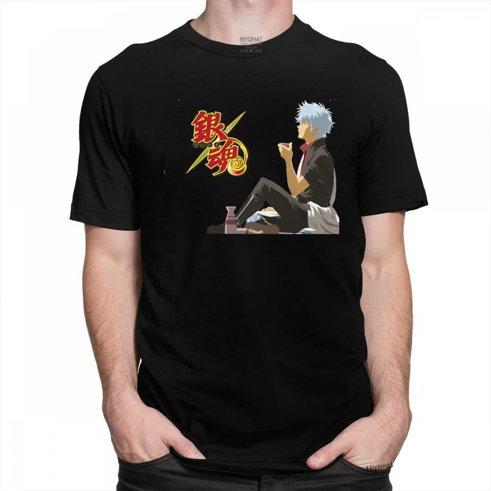 Великолепная Мужская футболка Gintama Gintoki Sakata, футболка с короткими рукавами, мягкая хлопковая Футболка с круглым вырезом, футболки с рисунком японского аниме Манга