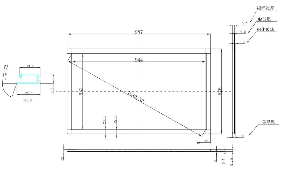 43 дюймов 10 точек ИК мульти сенсорный экран размерный рисунок продукта: