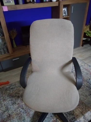 Очень простая Обложка, но она идеально сидит на стуле. Ткань эластичная и идеально подходит! Похоже на новый стул! Кроме того, доставка была очень быстрой