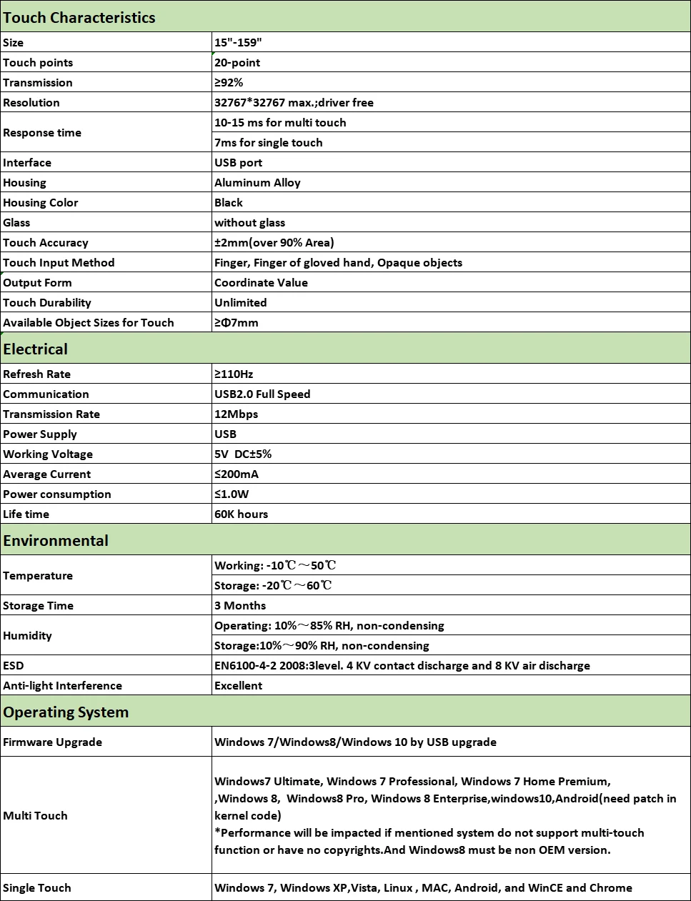 Высокоточная инфракрасная сенсорная рамка, благодаря разрешению алгоритма интерполяции может достигать 32767 на 32767.