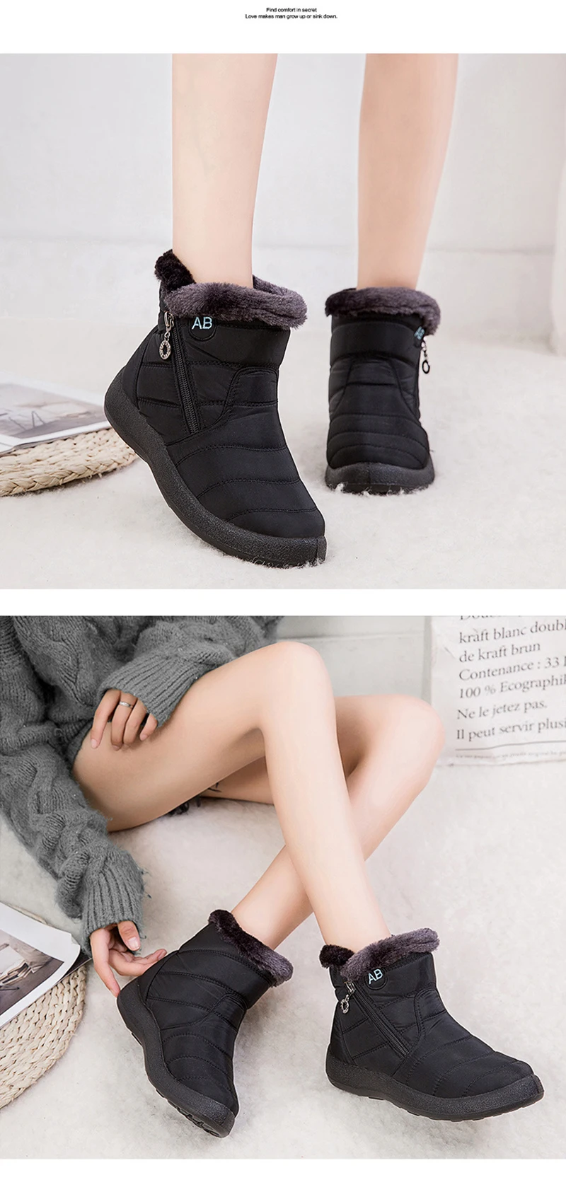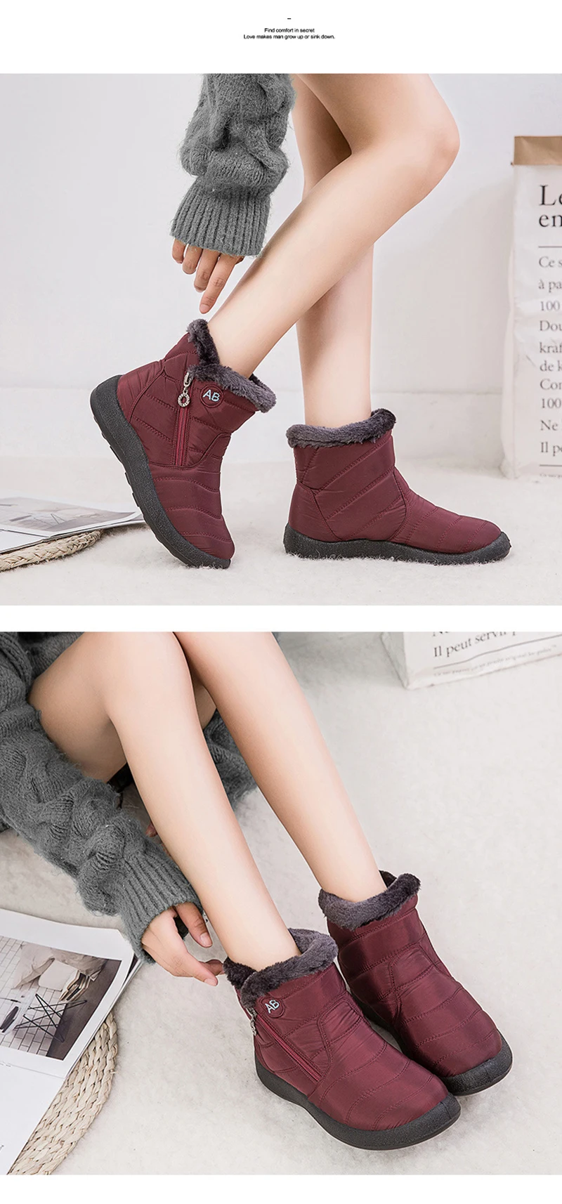 Водонепроницаемые зимние ботинки, женская зимняя теплая плюшевая обувь, женские ботильоны, Нескользящие, на молнии, на плоской подошве, Botas De Mujer 2020