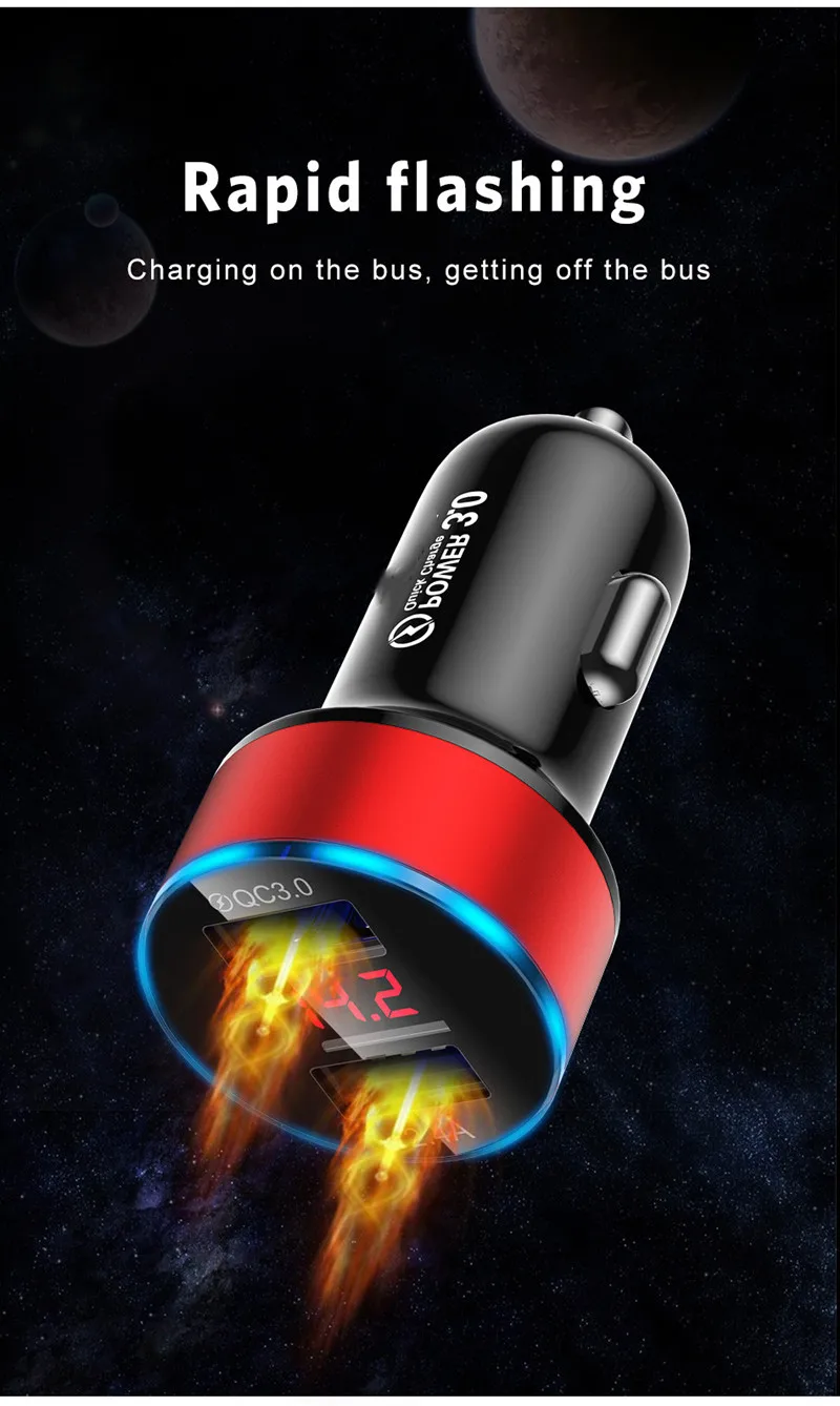 Автомобильное зарядное устройство QC3.0 с двумя USB-портами и цифровым светодиодным дисплеем icon star icon star icon star icon star icon star