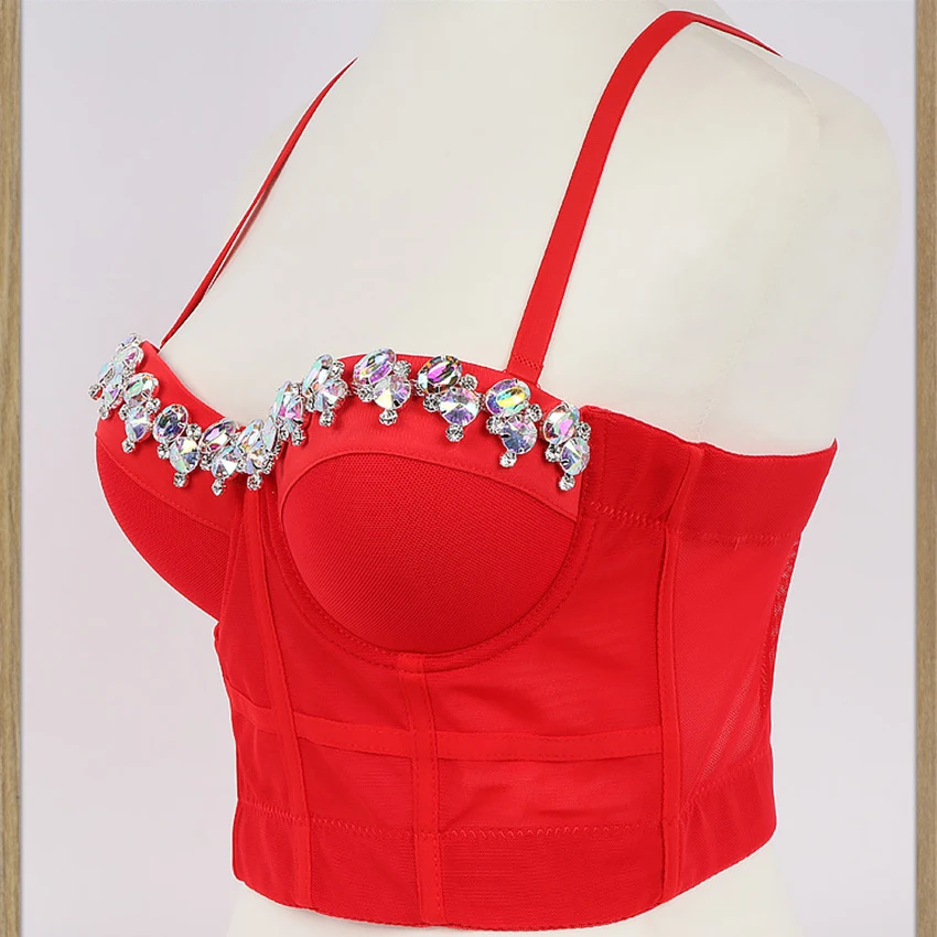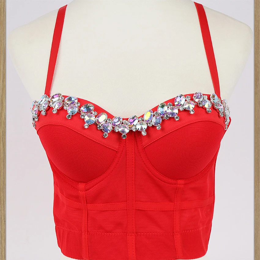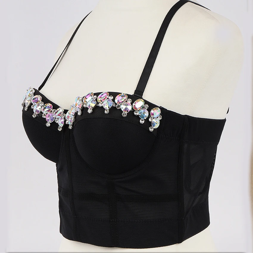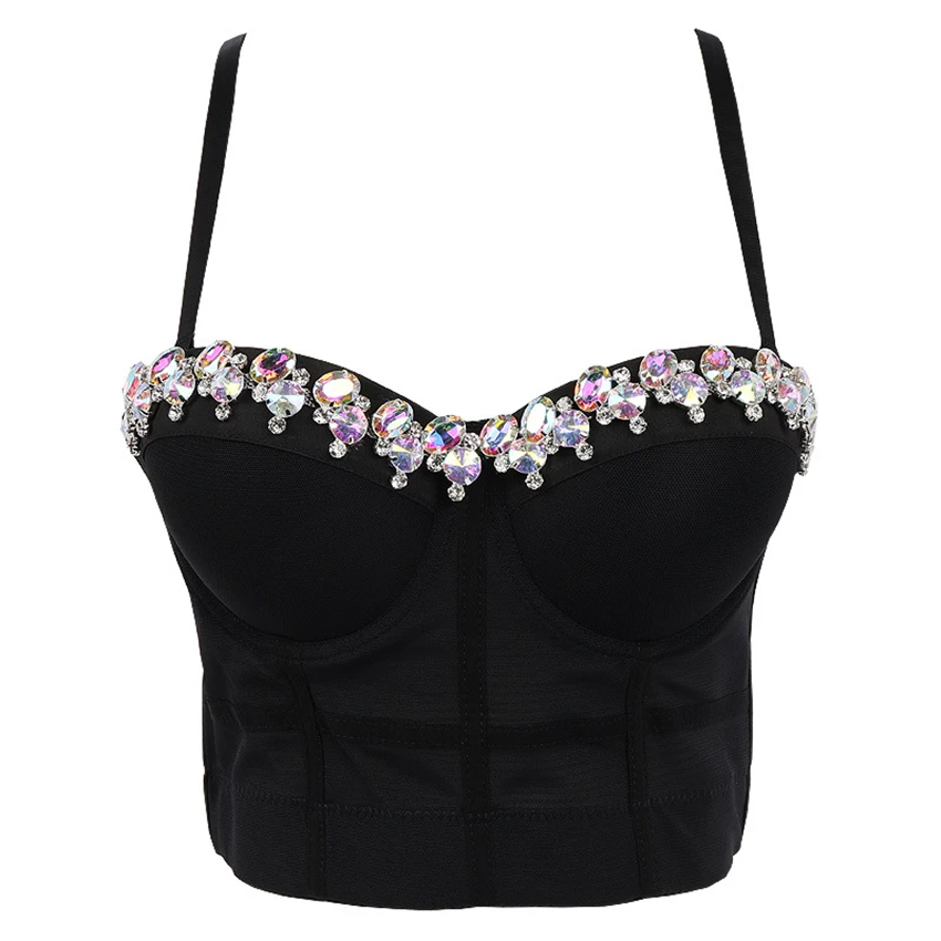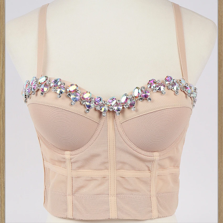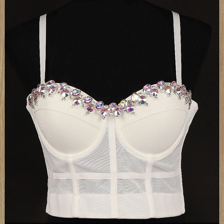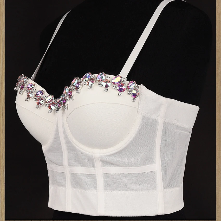Летний укороченный сексуальный корсет с открытыми плечами, топы для женщин 2021, укороченный топ с бисером и стразами для ночного клуба, пуш-ап, Camis DB1029