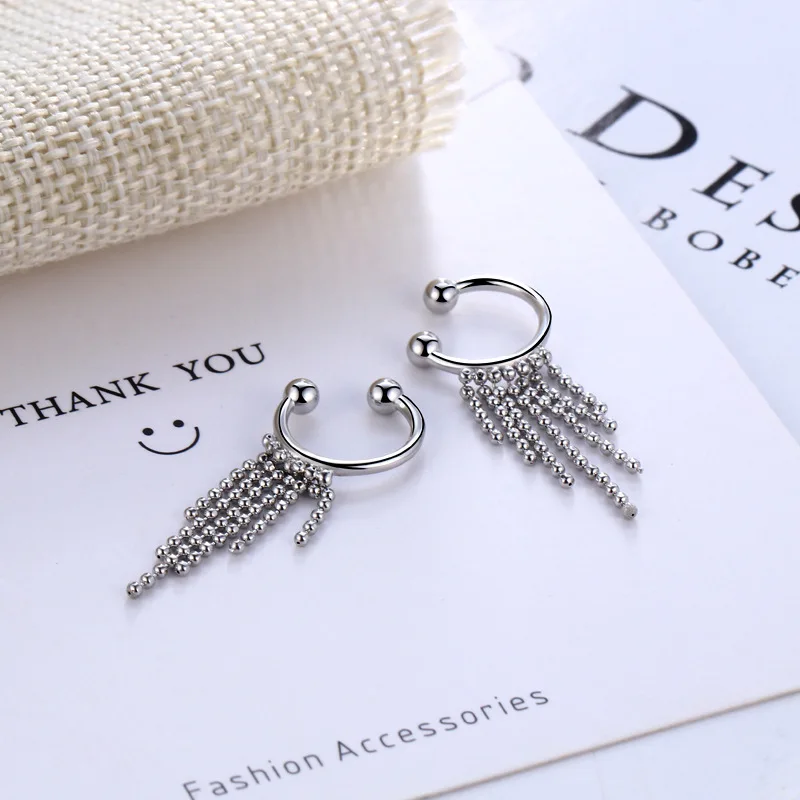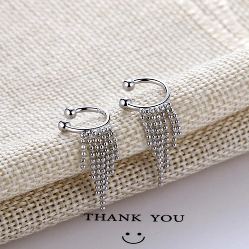 1 шт. серебряный цвет клипса для ушей круглые бусины кисточки серьги для женщин серьги-каффы Модные Ювелирные изделия Подарки 2020
