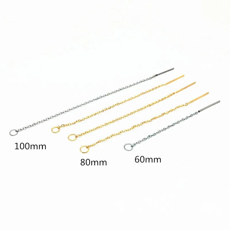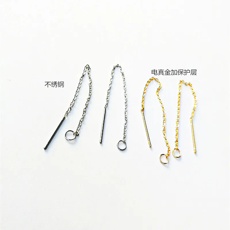 10 шт. Нержавеющаясталь Золото Длинная кисточка, цепочка падение Стикеры висячие серьги-Клипсы Серьги линии цепи для самостоятельного изготовления ювелирных украшений материалы