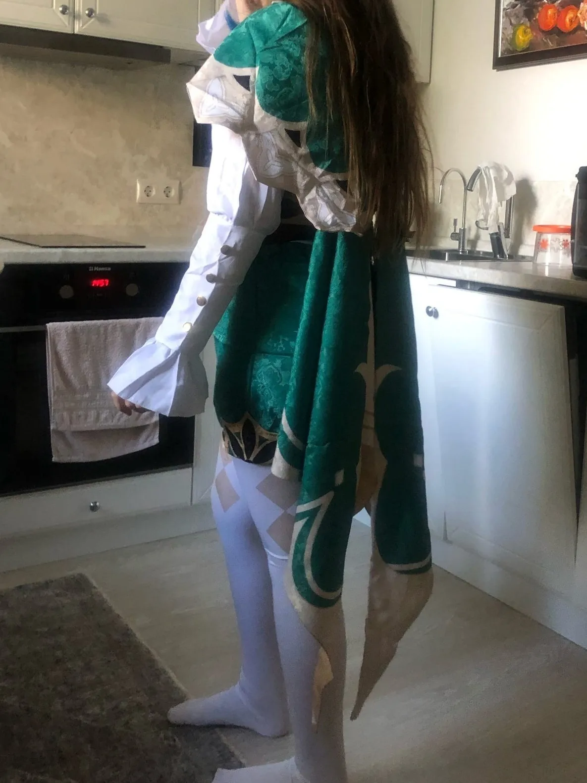 Всё идеально! Я рост 152,заказала М. Плащ длиннее чем нужно, но т. к. я взяла не свой рост это нормально. Вся одежда села ровно так, как и было написано в таблице. Косплей забрала, но так получилось, что мне забыли положить глаз бога, написала продавцу, он дослал в тот же день и отправил трек-номер. Он шёл 15. Парик, конечно, не самый лучший, макушка была сожжена, но благо шляпа прикрыла. Всем более чем довольна, за такую цену — сказка!