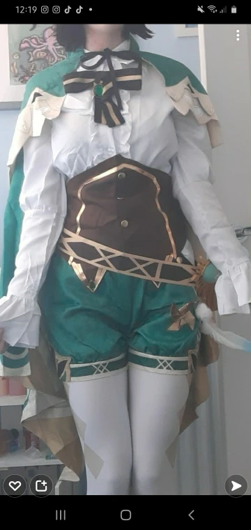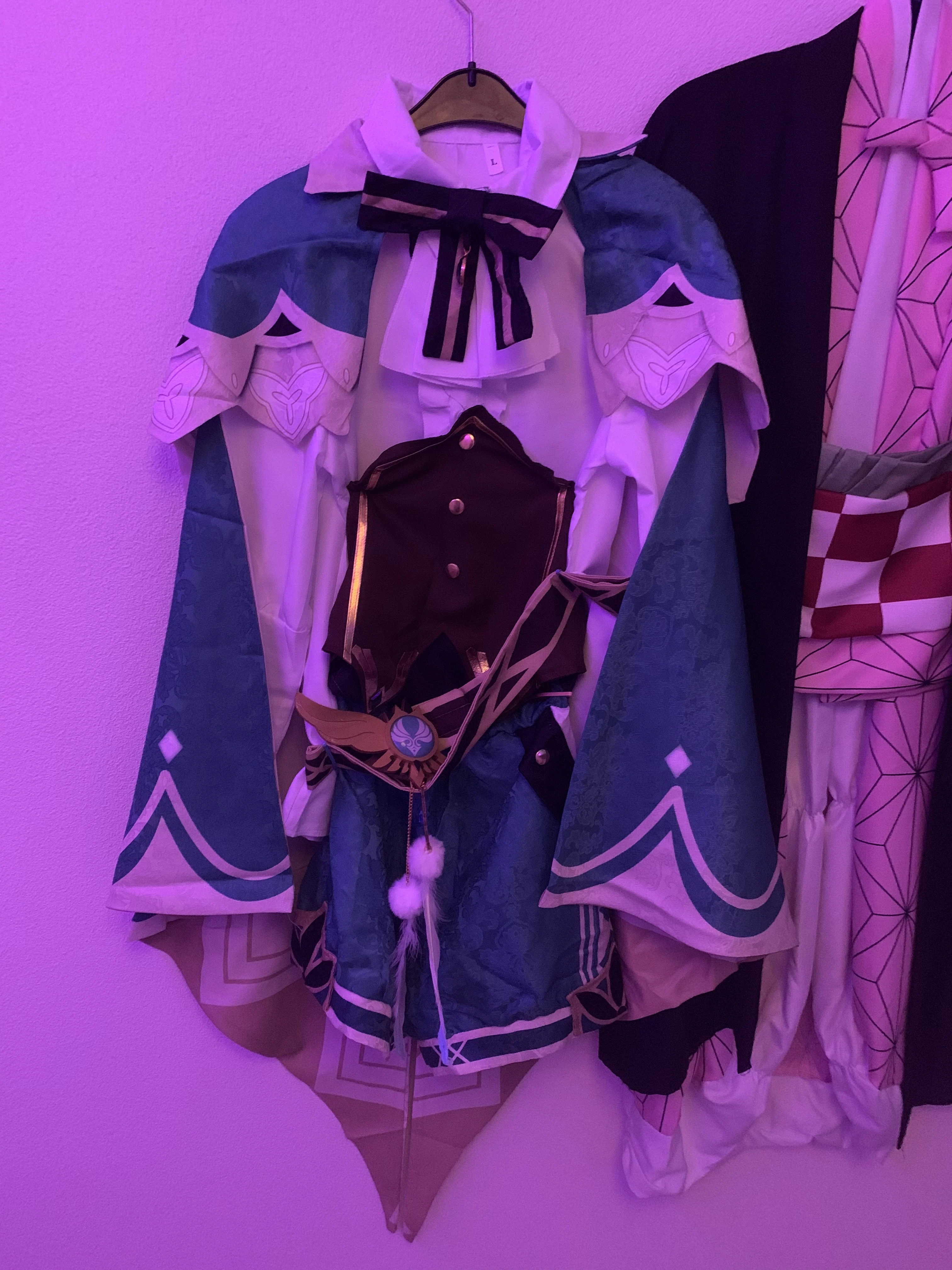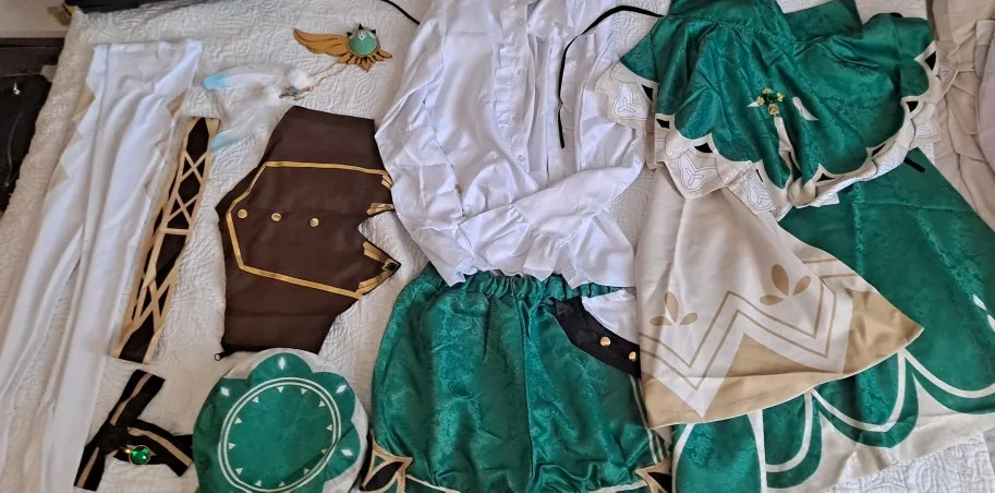 Это потрясающий костюм для косплея, ткань очень приятная, проблема в том, что зрение тяжелое, поэтому, когда вы прикрепляете его к поясу, он переворачивается, чтобы вы могли видеть знак anemo, но в противном случае очень хороший
